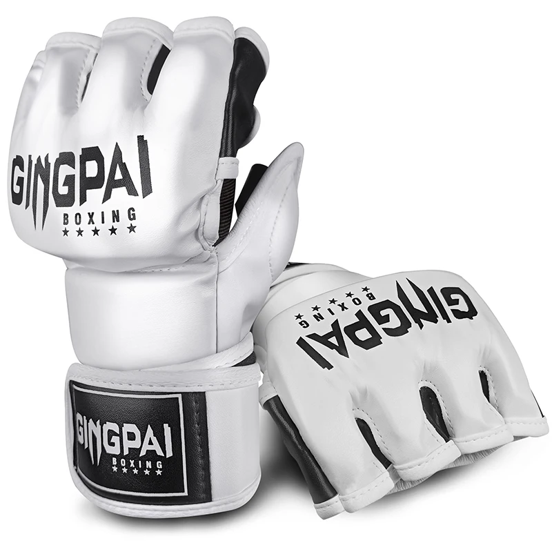 قفازات ملاكمة نصف قفازات MMA للقتال، حقيبة ثقيلة بدون أصابع مع قفازات مبطنة لكيك بوكسينغ الملاكمة التايلاندية