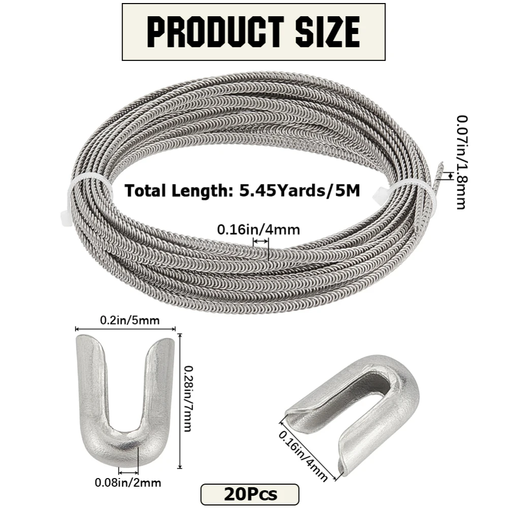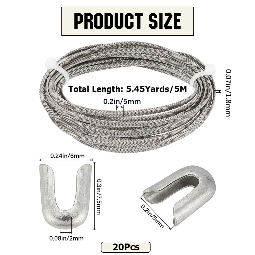 عظم معدني حلزوني بطول 5 ياردات: سوف تحصل على 5 ياردات من الهيكل المعدني الحلزوني و14 قطعة من أطراف العظام الحلزونية المصنوعة من الفولاذ المقاوم للصدأ 304.