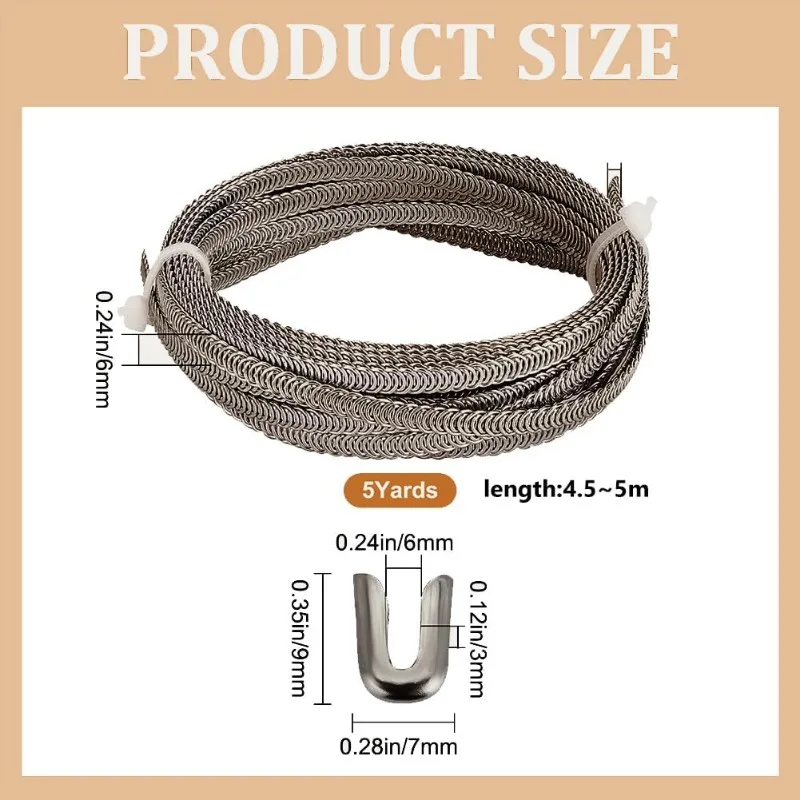 الحجم: هيكل معدني حلزوني تقريبًا.5 ياردة، 0.24 × 0.04 بوصة/6 × 1 مم، 304 أطراف عظم حلزونية من الفولاذ المقاوم للصدأ: 0.35 × 0.28 × 0.12 بوصة/9 × 7 × 3 مم، الفتحة: 0.24 بوصة/6 مم.