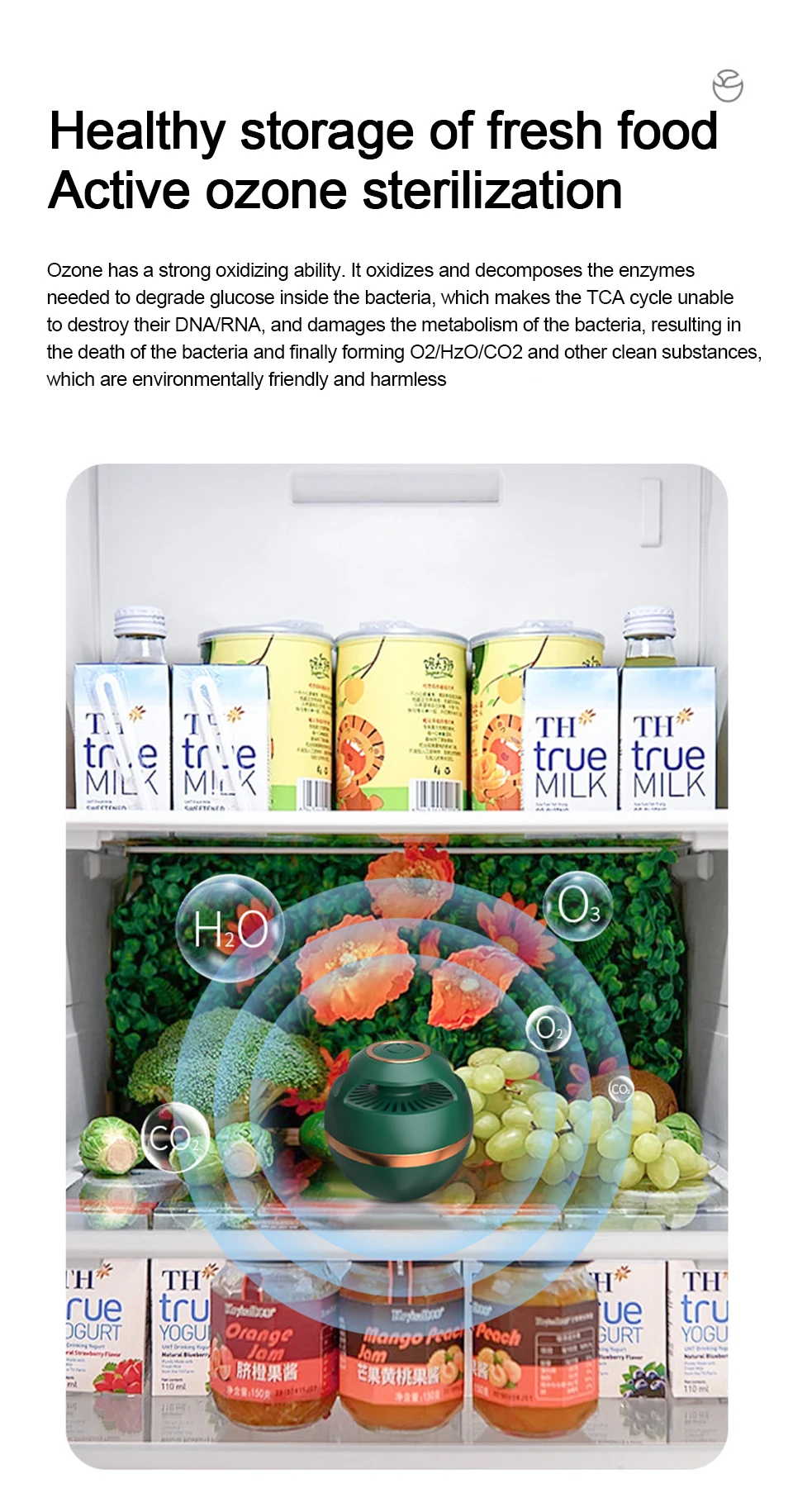 مزيل رائحة العرق المنزلي بالثلاجة USB معقم بالأوزون معطر هواء نضارة الطعام وتنقية المطبخ مزيل رائحة صغير