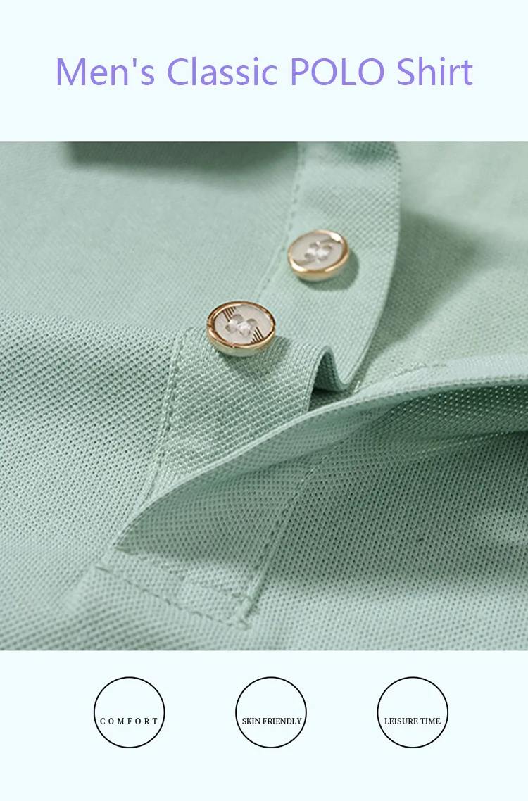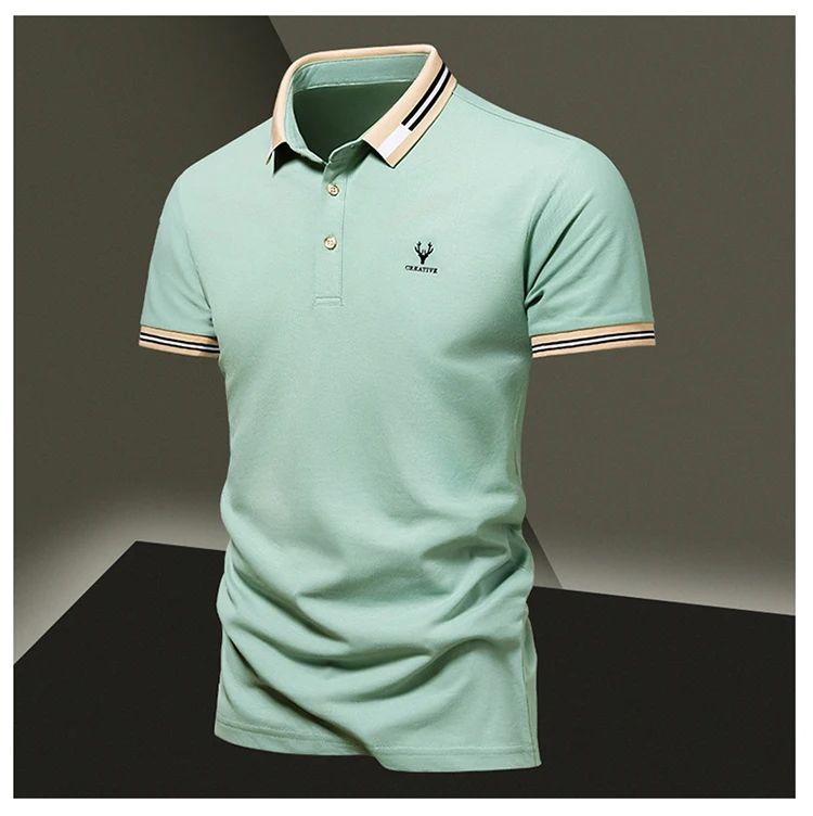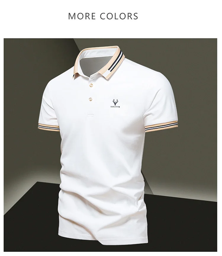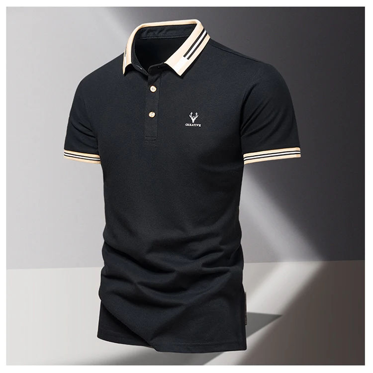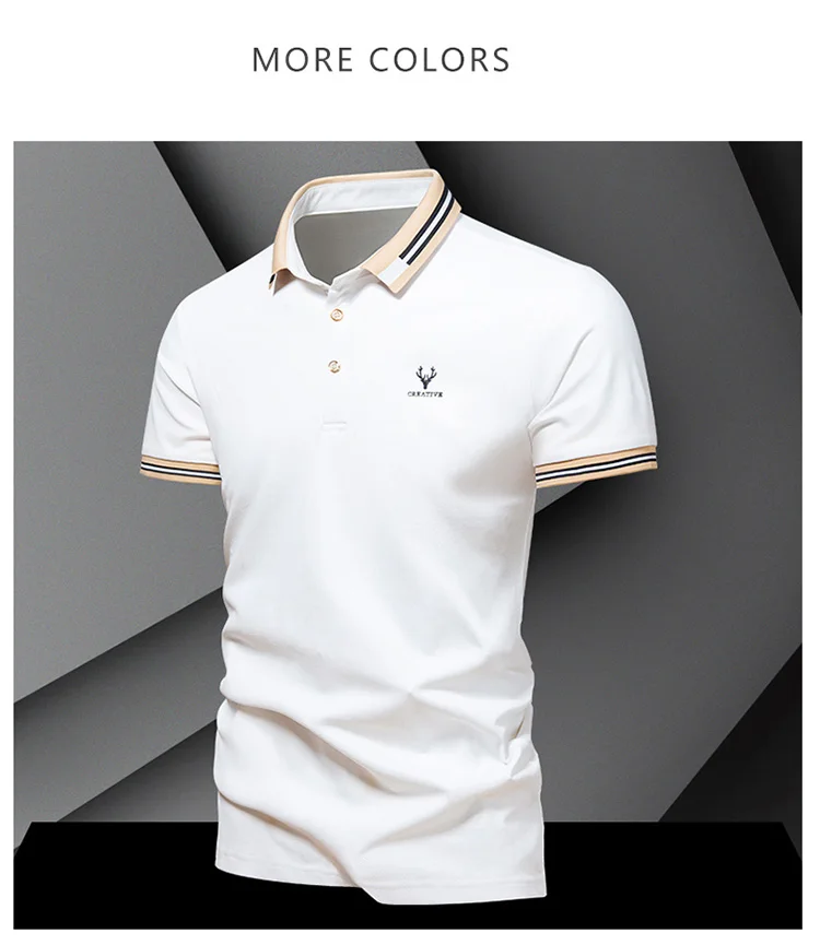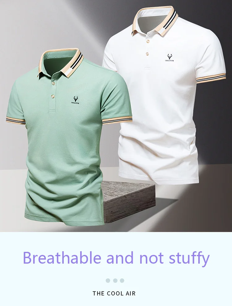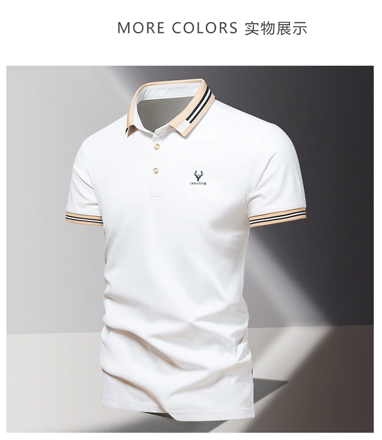 قميص بولو مطرز بأكمام قصيرة للرجال ، توب للعمل بطية صدر أحادية اللون ، حرير ثلجي عصري ، تجفيف سريع ، الصيف