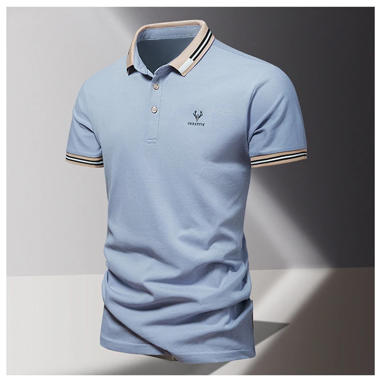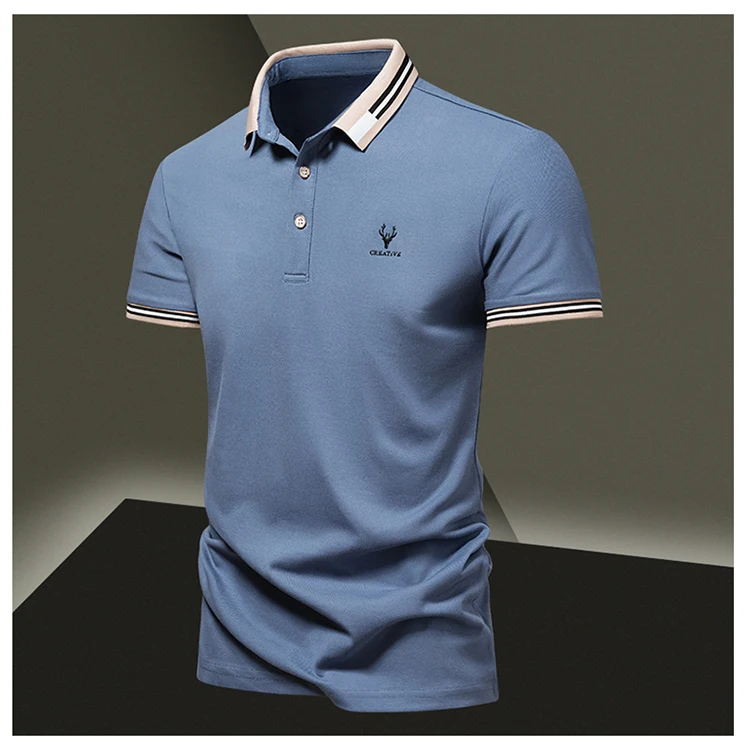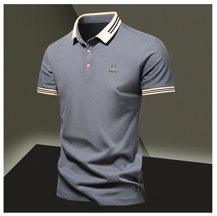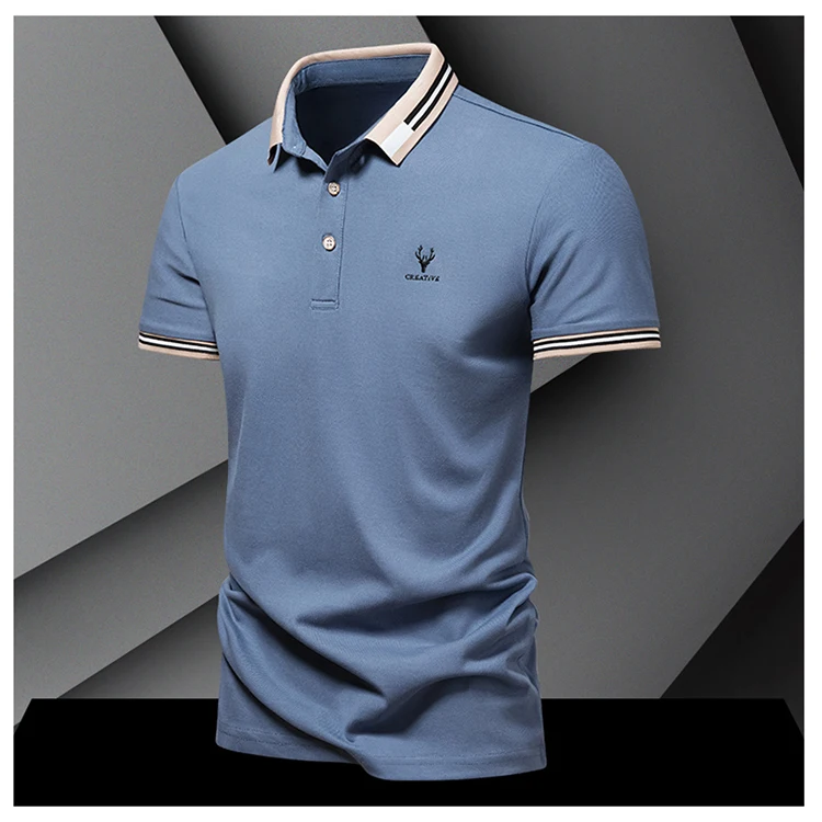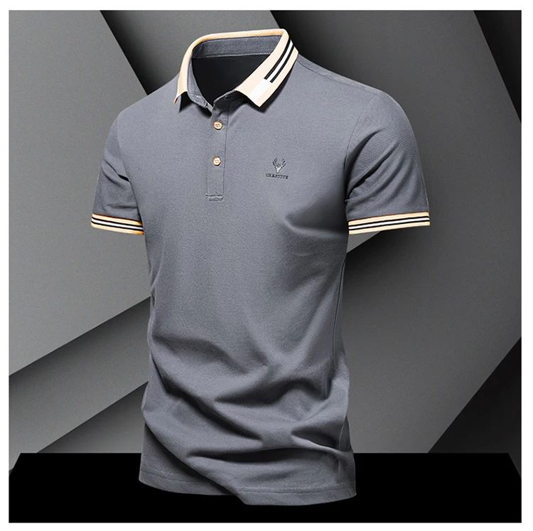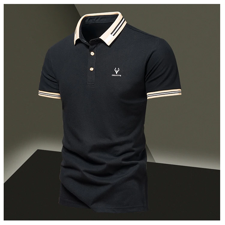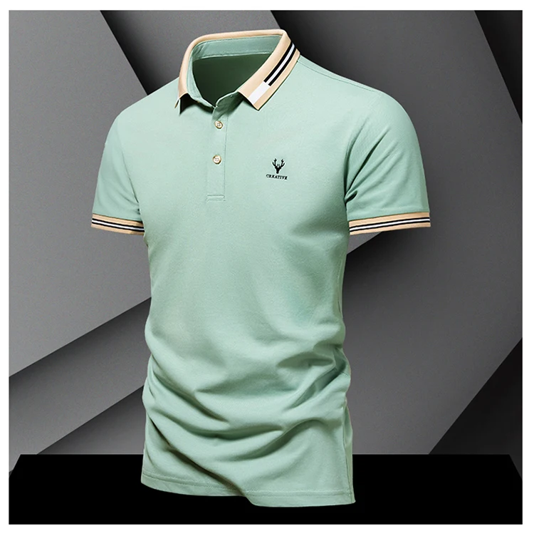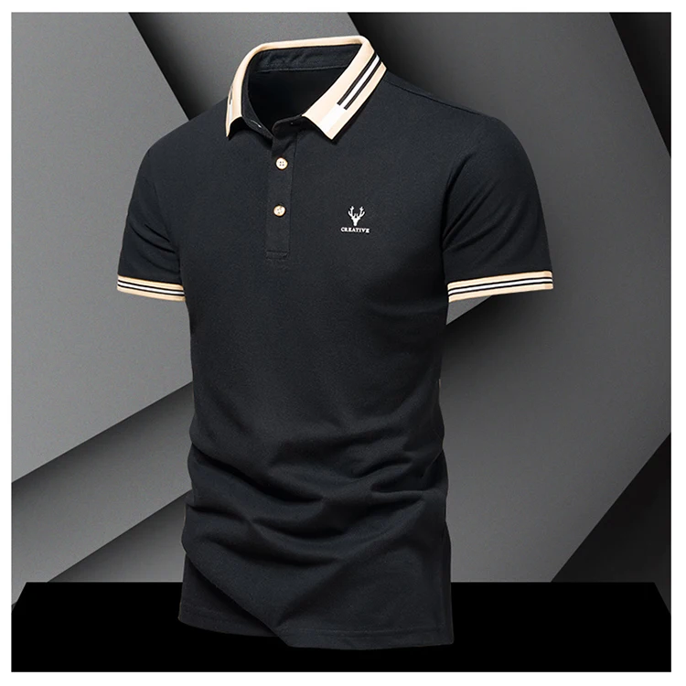 قميص بولو مطرز بأكمام قصيرة للرجال ، توب للعمل بطية صدر أحادية اللون ، حرير ثلجي عصري ، تجفيف سريع ، الصيف