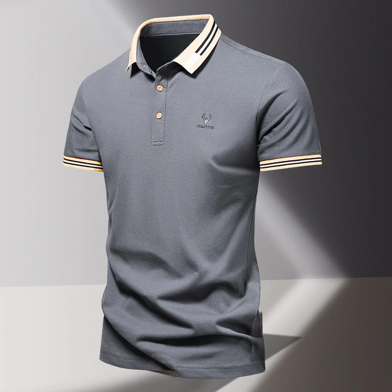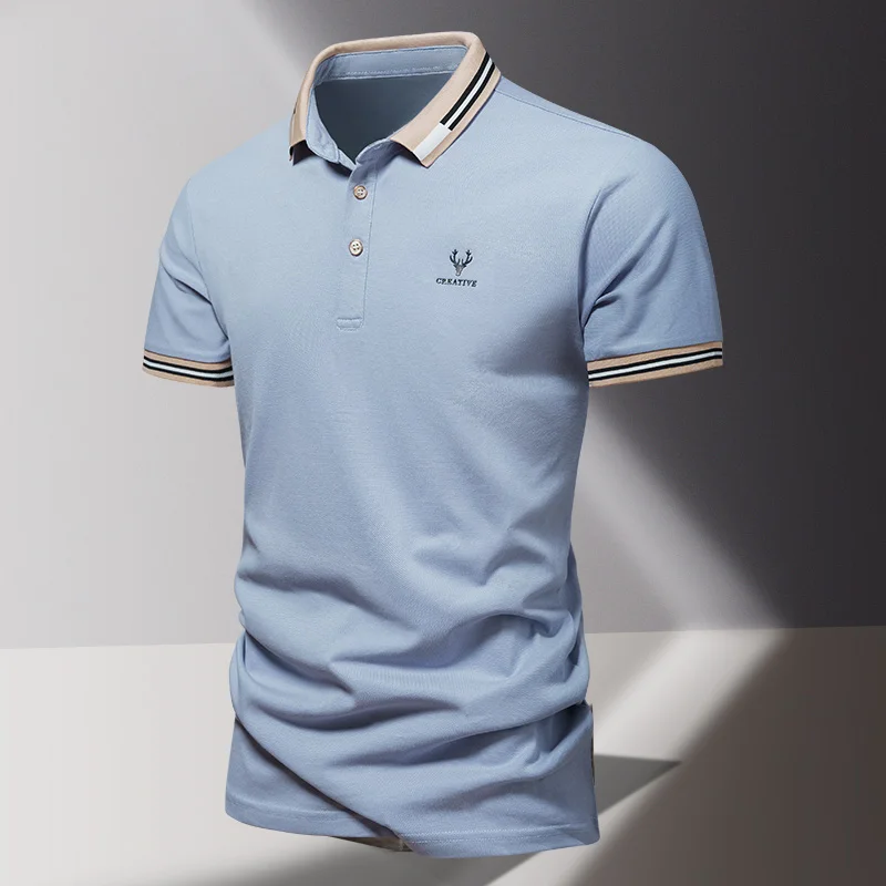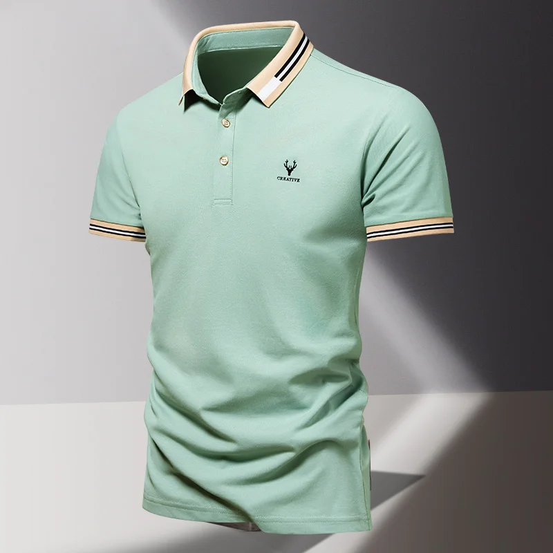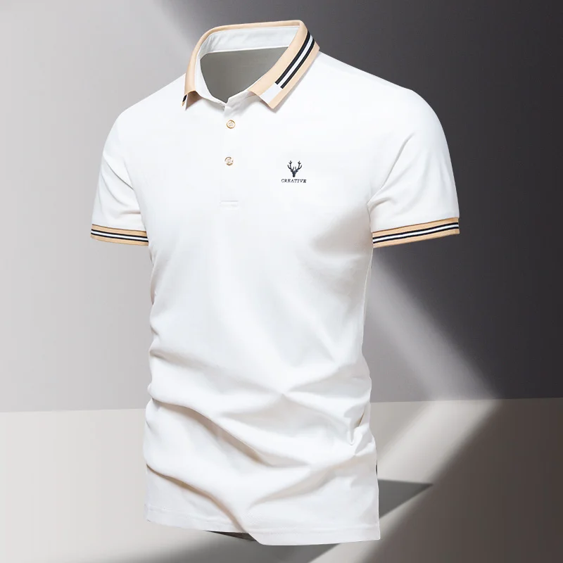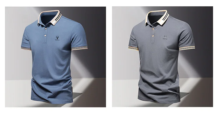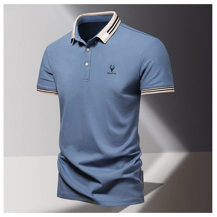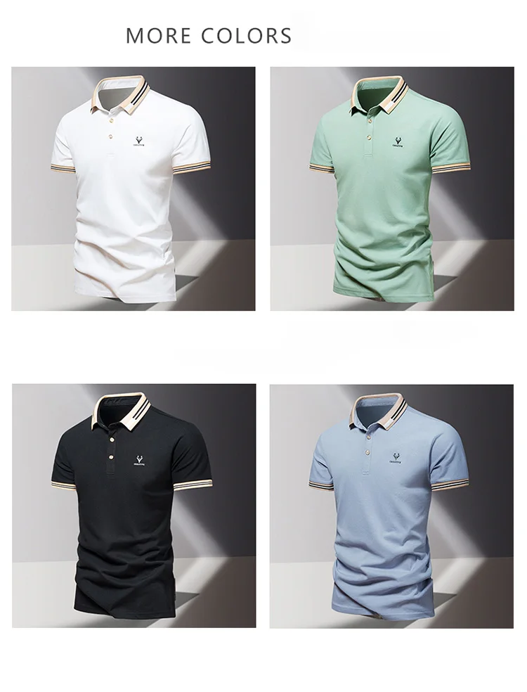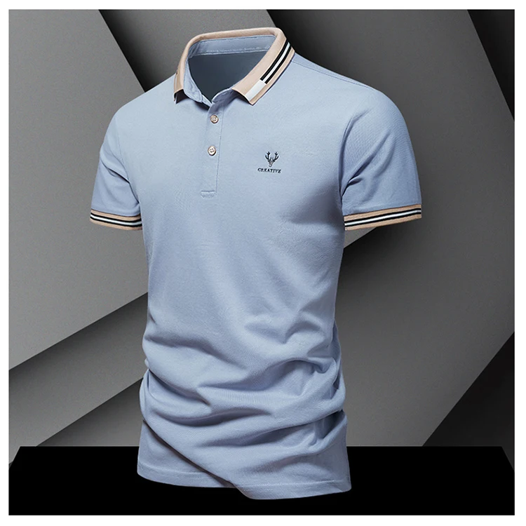 قميص بولو مطرز بأكمام قصيرة للرجال ، توب للعمل بطية صدر أحادية اللون ، حرير ثلجي عصري ، تجفيف سريع ، الصيف