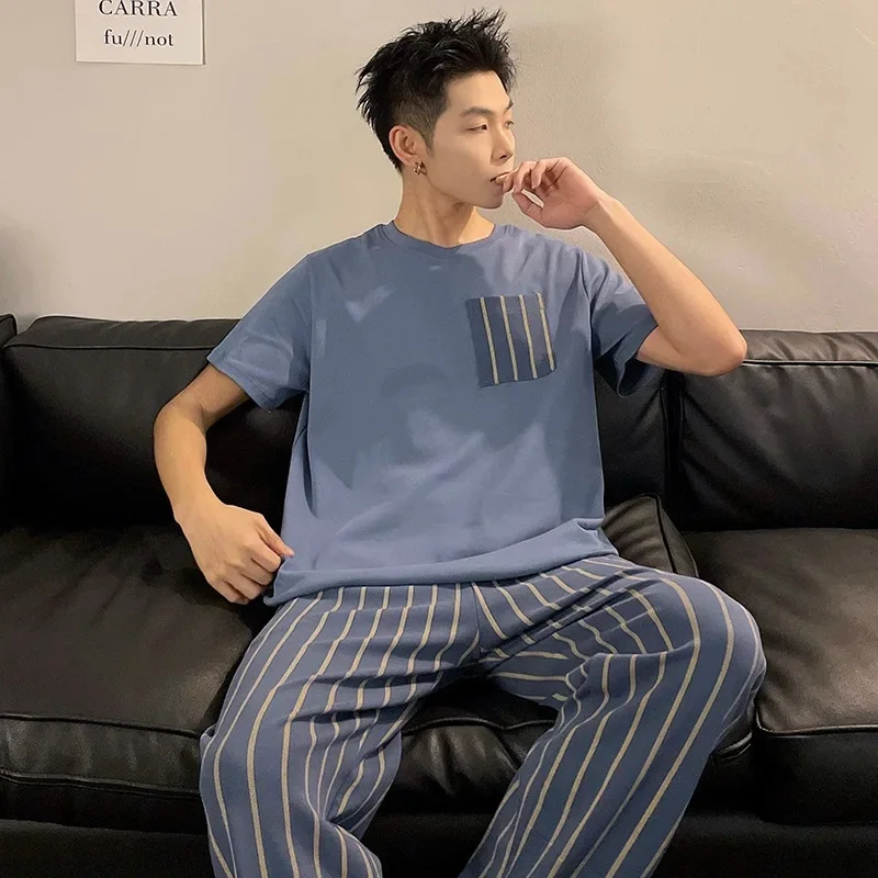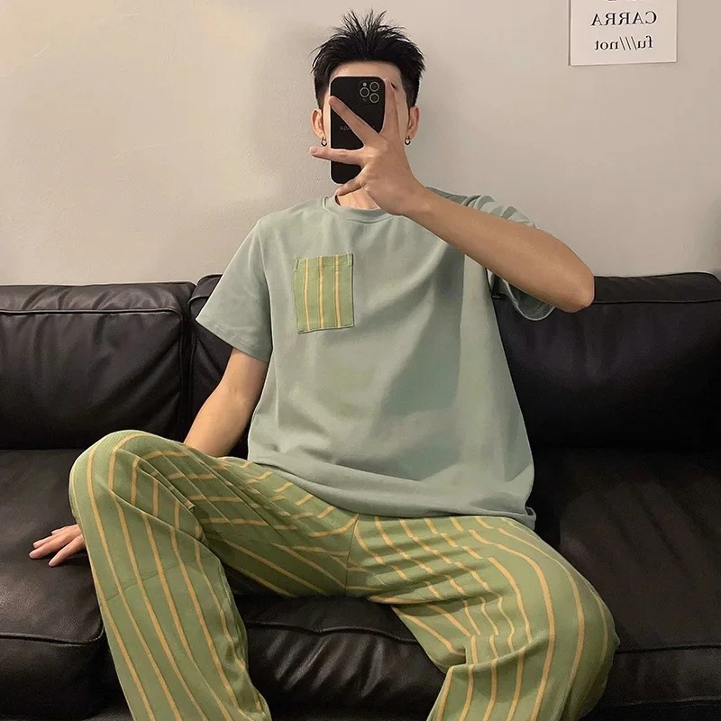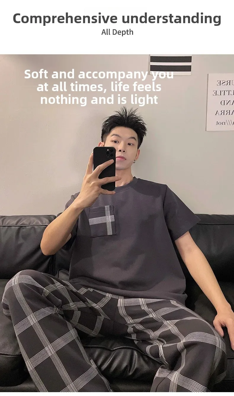 • تصميم عصري راقي:تتميز بيجامات الرجال الصيفية هذه بنمط منقوش أنيق، مما يوفر مظهرًا عصريًا راقيًا لراحتك أثناء النوم.
