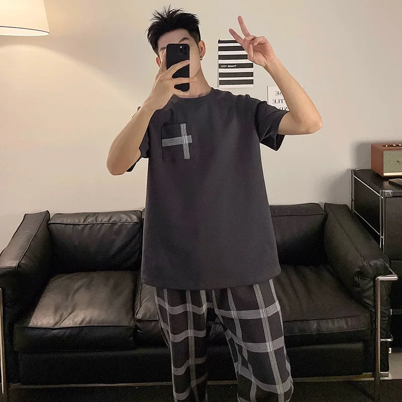 • قميص قصير الأكمام :يوفر الجزء العلوي بأكمام قصيرة ملمسًا خفيف الوزن، مثاليًا ليالي الصيف الدافئة، مما يضمن لك البقاء منتعشًا ومرتاحًا.