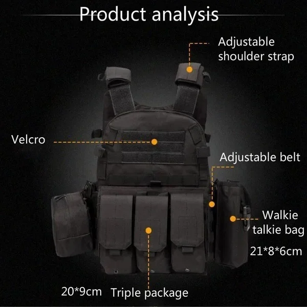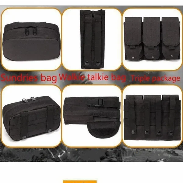 النايلون الحقيبة مول والعتاد التكتيكية سترة الجسم درع الصيد لوحة الناقل الادسنس الملحقات 6094 العسكرية القتالية الجيش القتال سترةنوع العنصر: سترة تكتيكيةاللون: أسود/أخضر/تان/CPالمواد: قماش أكسفورد 600Dالمميزات :قماش أكسفورد 600D مقوى مضمون لتحقيق أقصى قدر من المتانة.جيب ترطيب شبكي داخلي يحمل المثانة المائية ويزيد التهوية أيضًا.قابل للتعديل ليناسب معظم أنواع الجسم.حزام مولي عالي التحمل لمزيد من الملحقات.تحتوي أحزمة الكتف على شريط ربط مصمم لضبط طول حزام الكتف حسب طلب المستخدم.ملاحظة:1. نظرًا لاختلاف الشاشات وتأثير الضوء، والمواد من مصنع مختلف،قد يختلف اللون الفعلي للمنتج قليلاً عن اللون الظاهر في الصور.شكرا لك!2. يرجى السماح بانحراف القياس بمقدار 1-2 سنتيمتر بسبب القياس اليدوي.