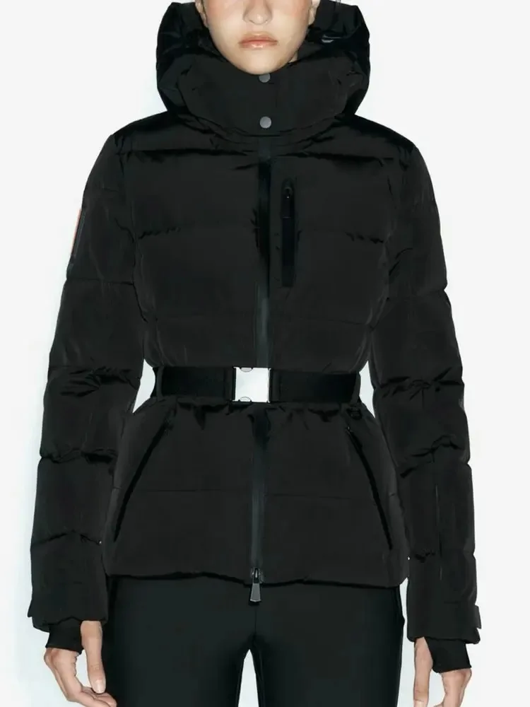 معاطف شتوية نسائية بقلنسوة عالية الخصر مبطنة مع حزام سترات نسائية أنيقة سميكة دافئة سترات تزلج مقاومة للرياح