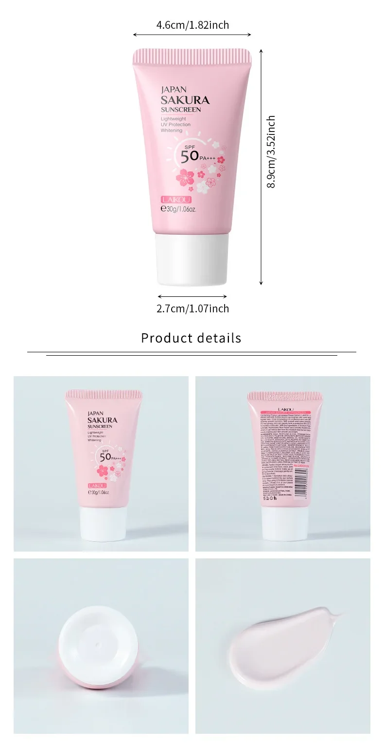كريم لايكو ساكورا الكوري الواقي من الشمس واقي للوجه مانع الشمس Spf50 عازل لوشن مرطب 30 جرام