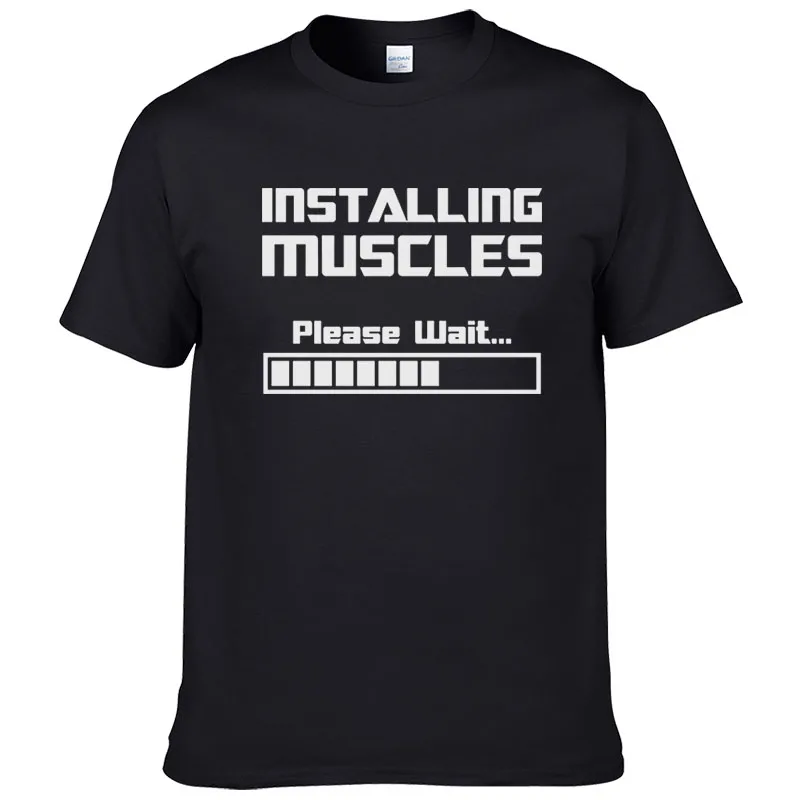 تيشيرتات صيفية جديدة لتثبيت العضلات يرجى الانتظار تحميل بار مضحك طباعة تي شيرت الرجال النساء القطن قصير الأكمام كول تيز #310