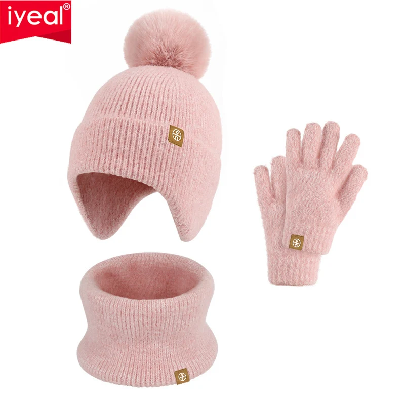 يايل-طقم قبعة ووشاح وقفازات للأطفال ، قبعة صوف محبوكة جميلة ، طقم من 3 قطع ، أولاد وبنات ، أطفال ، شتاء