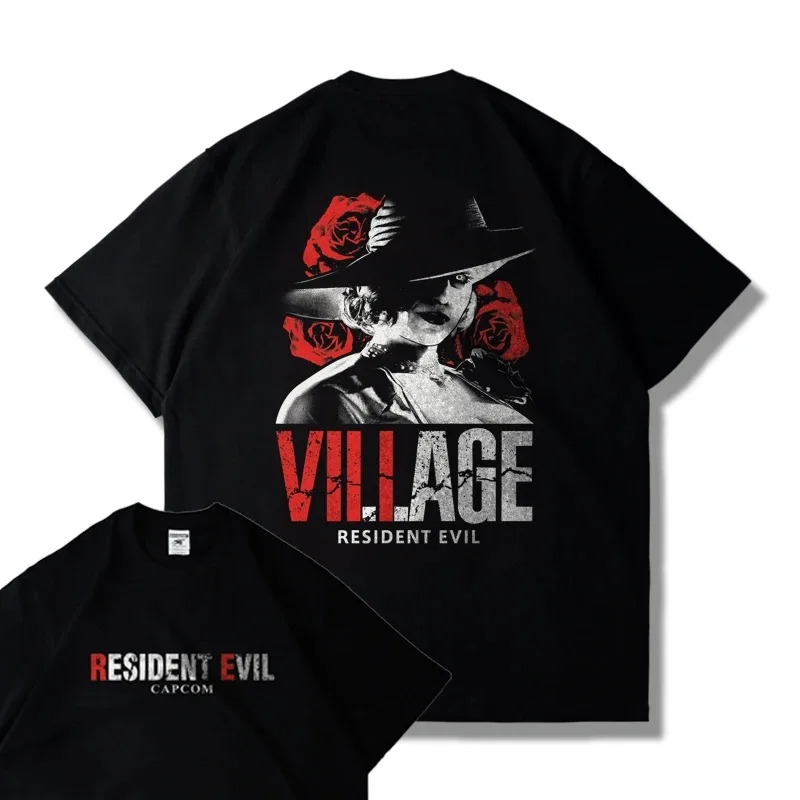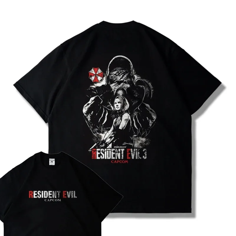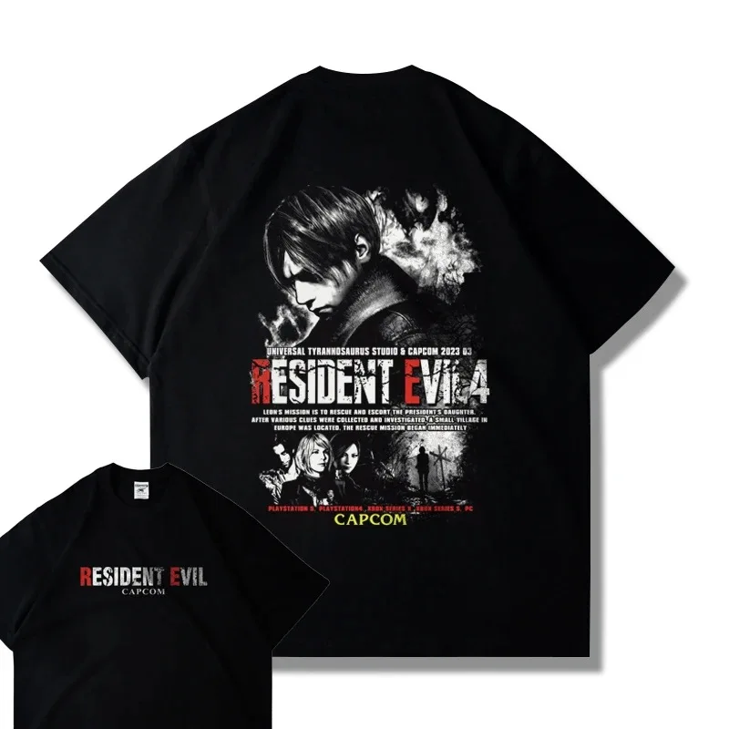 تي شيرت Resident Evil 4 مطبوع من سلسلة موضة الرجال والنساء مريح فضفاض غير رسمي من القطن برقبة دائرية وأكمام قصيرة