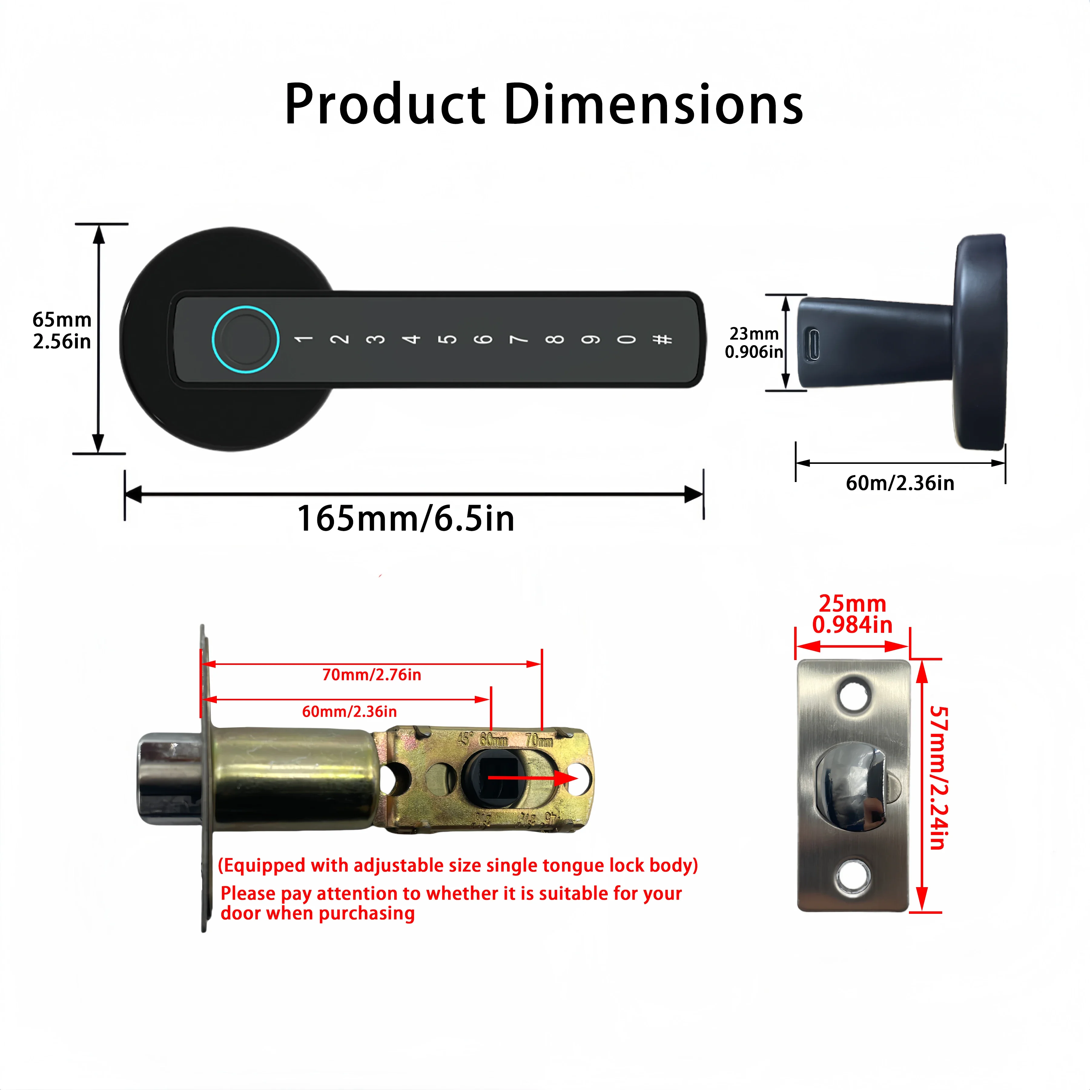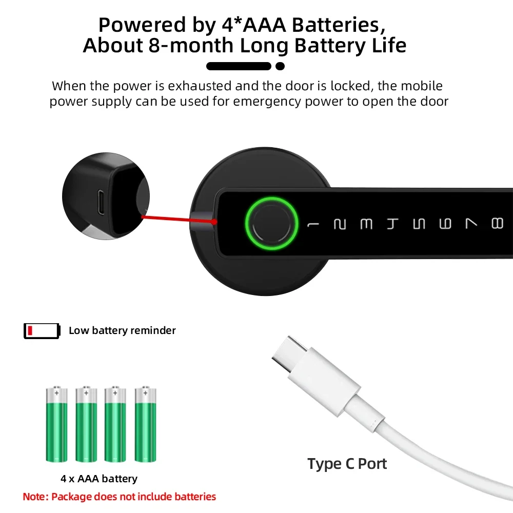 طريقة الفتح: بصمة الإصبع، كلمة المرور، بلوتوث Tuya، بطاقة IC، كلمة مرور مؤقتة، مفتاح ميكانيكي