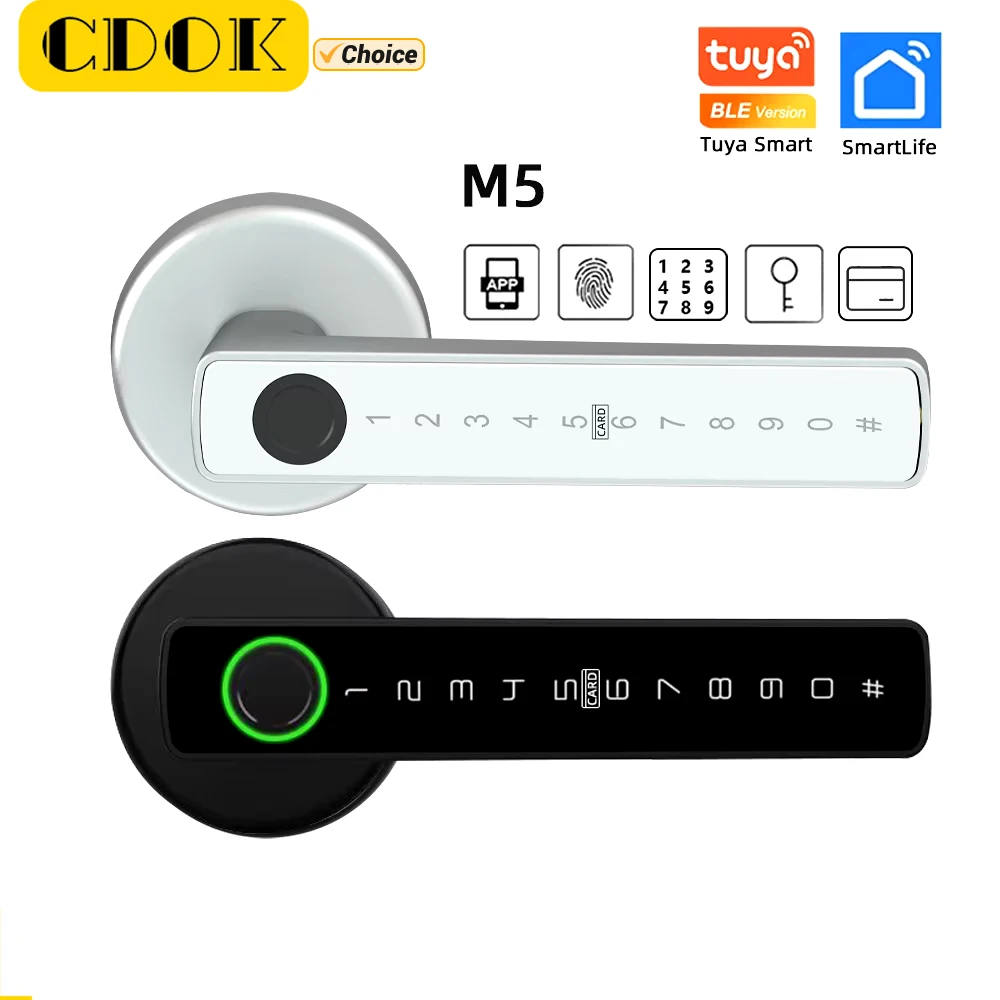 CDOK M5 Tuya BLE قفل باب بصمة الإصبع الذكي قفل إلكتروني مع كلمة المرور/المفتاح/البطاقة/Smartlife/Tuya APP فتح لغرفة النوم