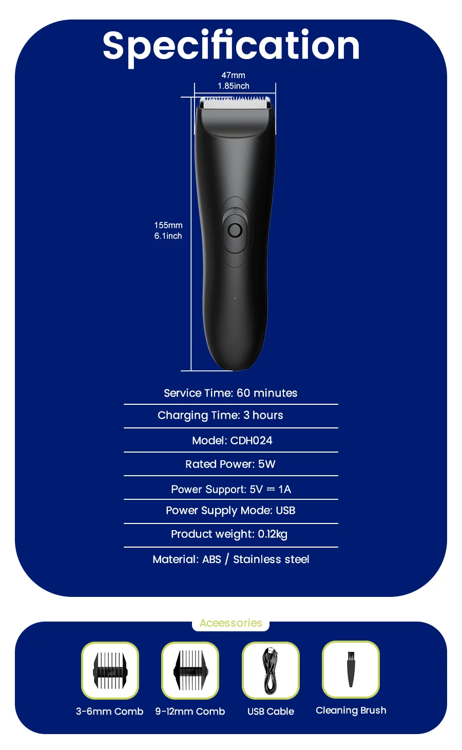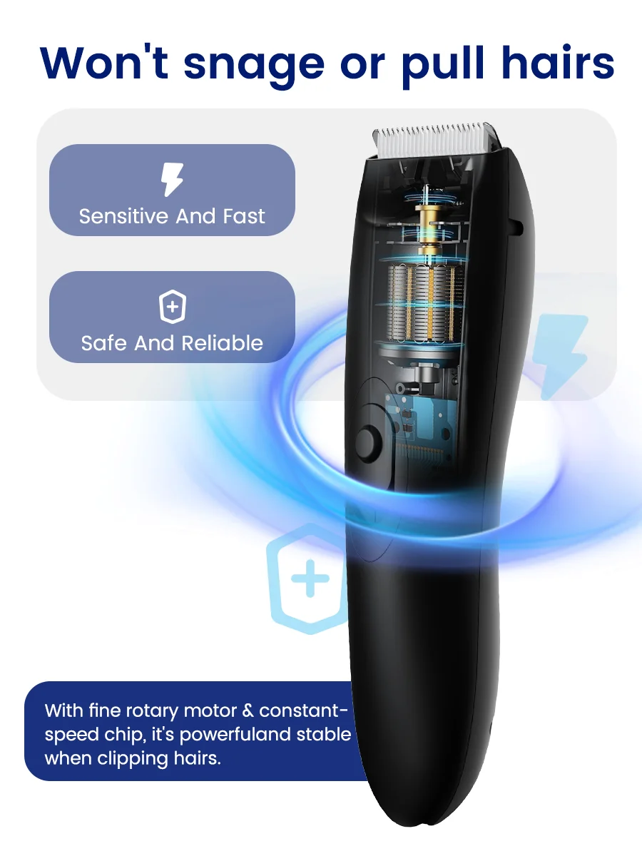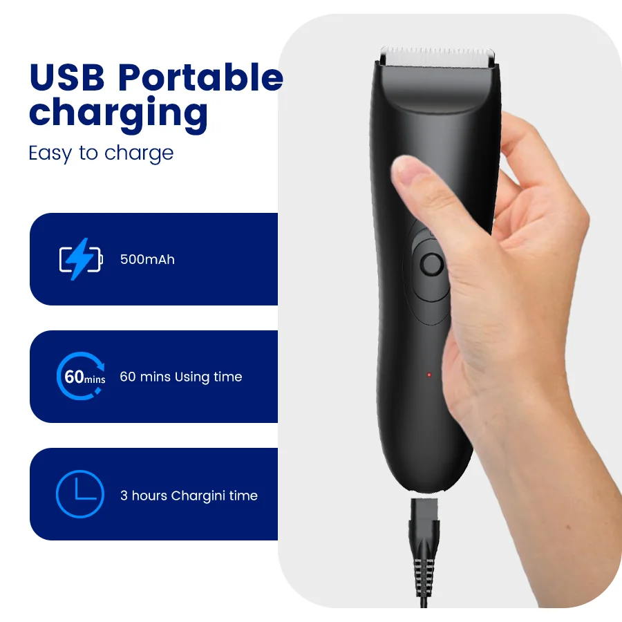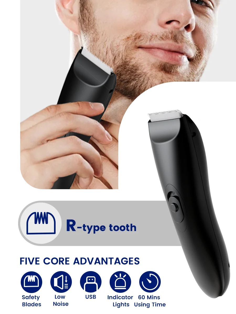 ماكينة تشذيب الجسم/Groin اللاسلكية للرجال IPX6 مع تقنية SkinSafe، شفرة ثلاثية الأبعاد وLED - قابلة لإعادة الشحن للمناطق الحساسة
