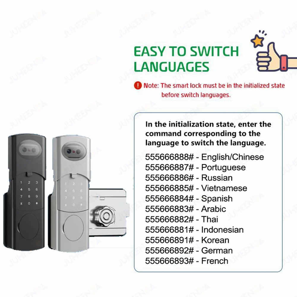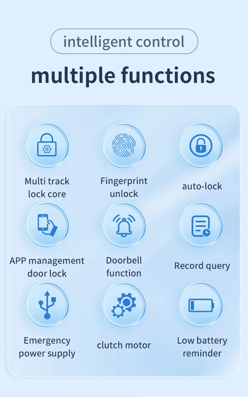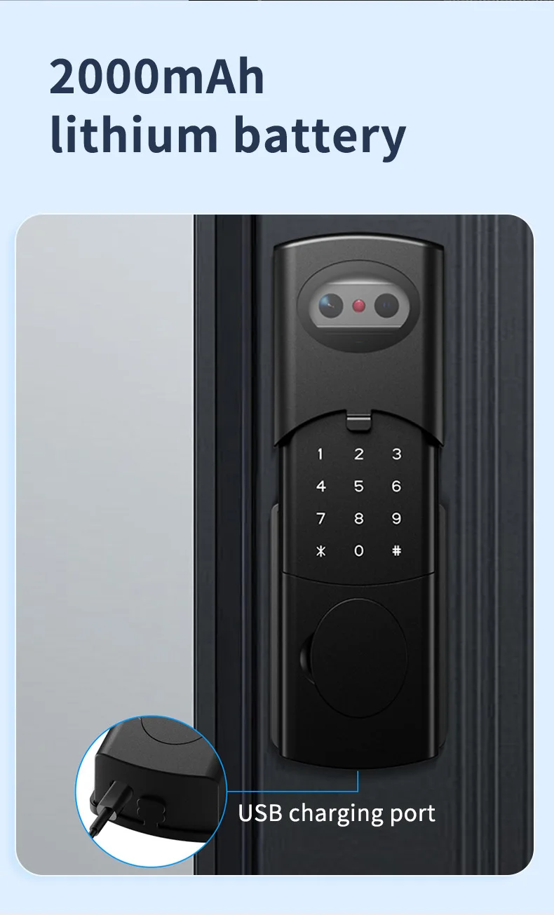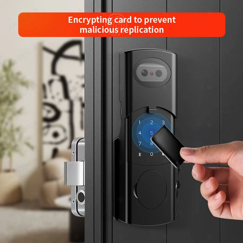 يدعم قفل الباب الذكي التعرف على الوجه/بصمة الإصبع/كلمة المرور/بطاقة IC/المفتاح الميكانيكي/