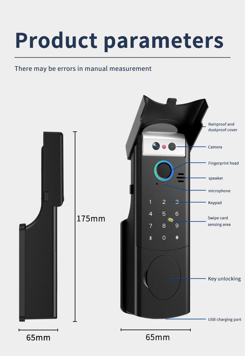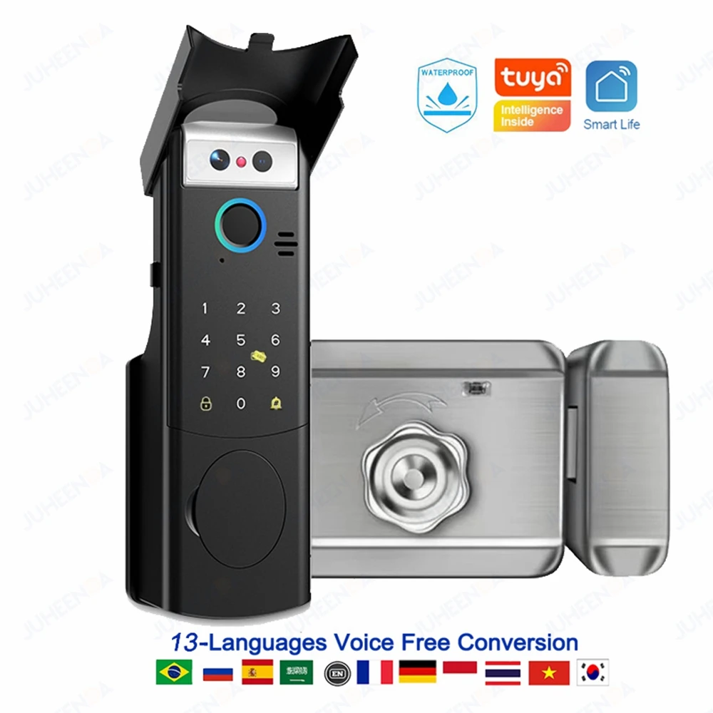 في الهواء الطلق حافة بوابة الباب قفل ذكي Tuya Wifi App مقاوم للماء الرقمية بدون مفتاح التعرف على الوجه قفل بصمة الإصبع مع الفيديو البيني