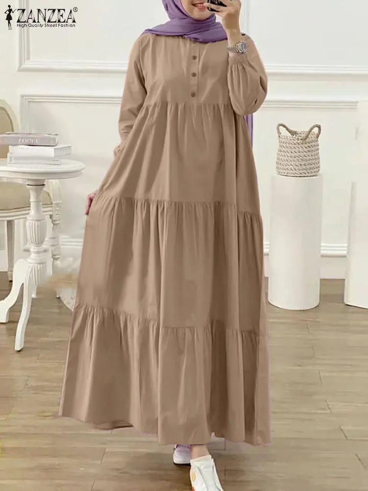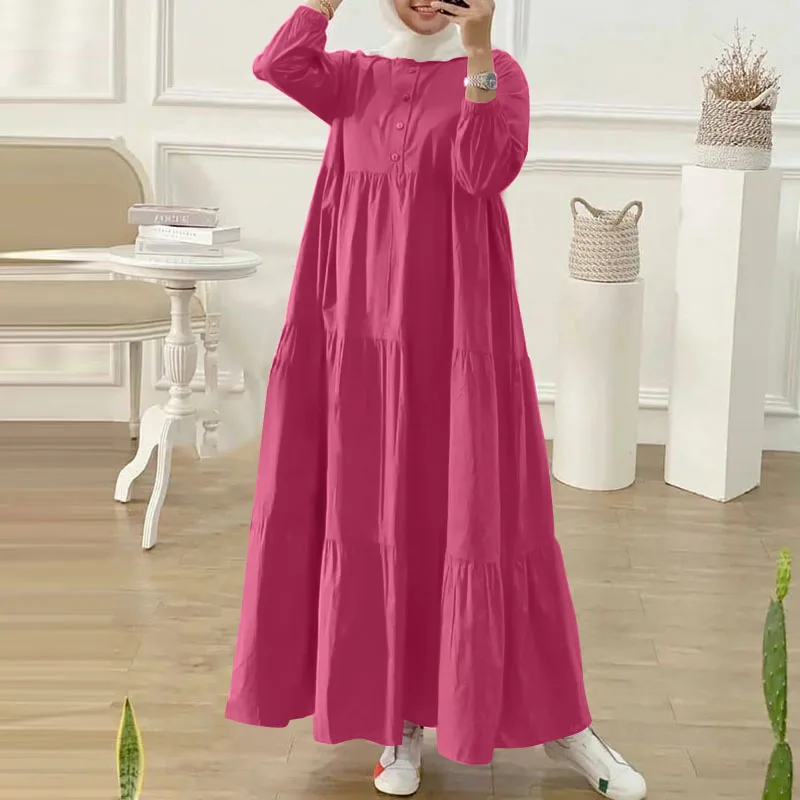 تصميم الفستان الفضفاض يمنحك حرية الحركة والانطلاق، بينما يضفي عليكِ لمسة من الرقي والأنوثة. الأكمام الطويلة والرقبة الدائرية تزيد من أناقتك، وتجعلكِ محط الأنظار في كل مناسبة.