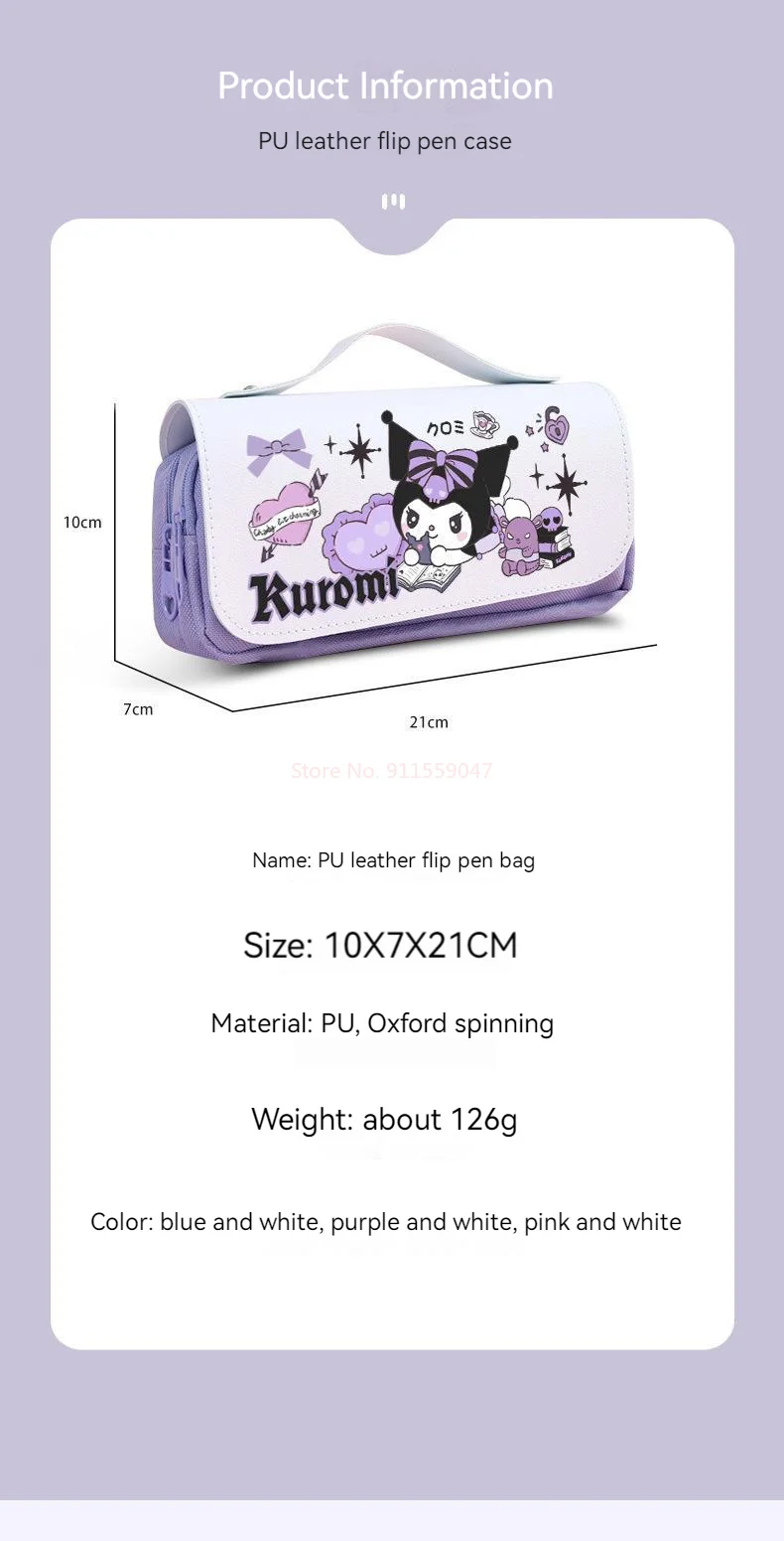 سانريو Pu سعة كبيرة مقلمة Kawaii سيناموروول ميلودي Kuromi اللوازم المدرسية أقلام رصاص حقيبة القلم الحقيبة القلم الحقيبة القلم القرطاسية
