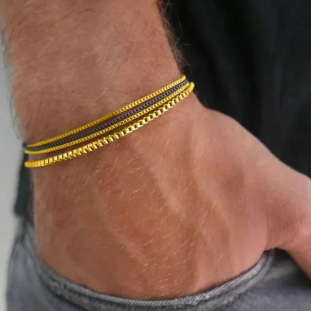 4 قطعة/المجموعة الفولاذ المقاوم للصدأ قابل للتعديل صندوق سلسلة أساور للرجال بسيطة خمر الفضة اللون الكوبية الإسورة مجموعات حزب مجوهرات هدية