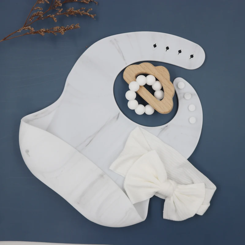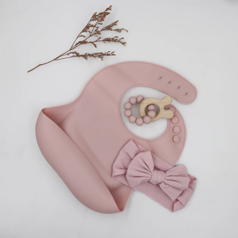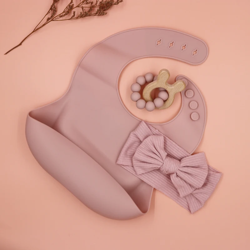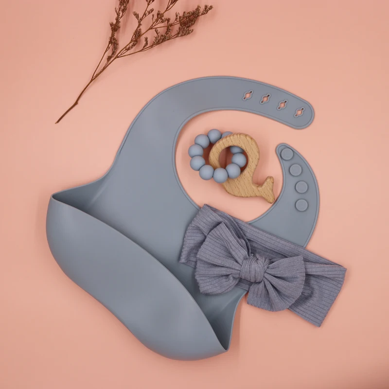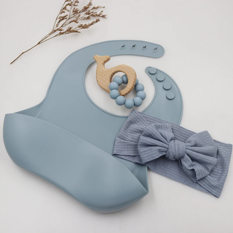 تشمل المرايل سيليكون واحدة ، عضاضة واحدة ، عصابة رأس واحدة