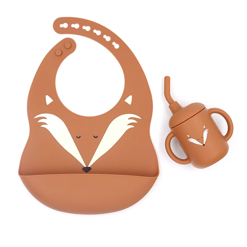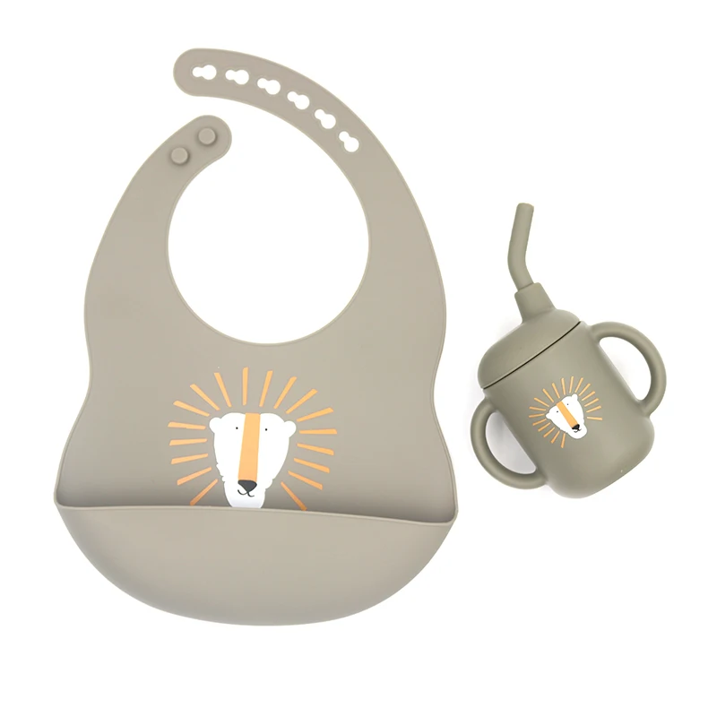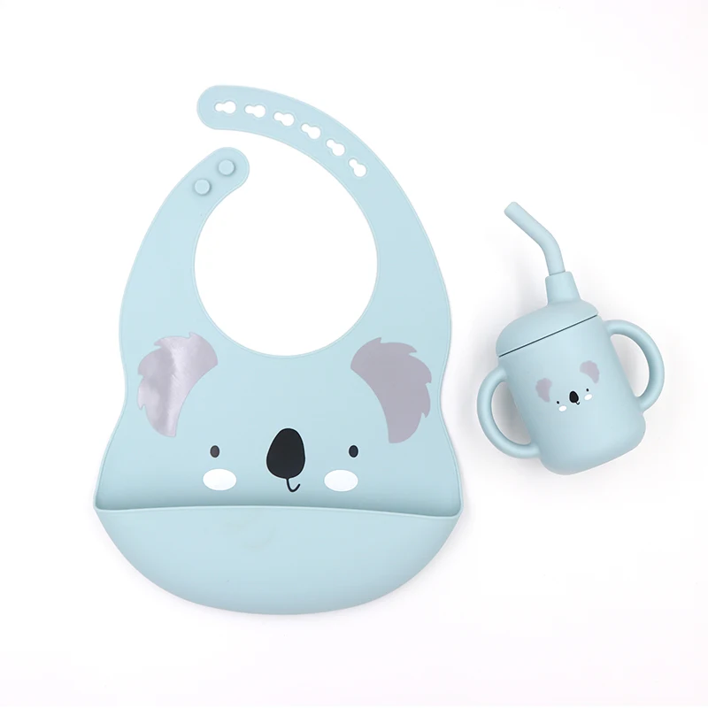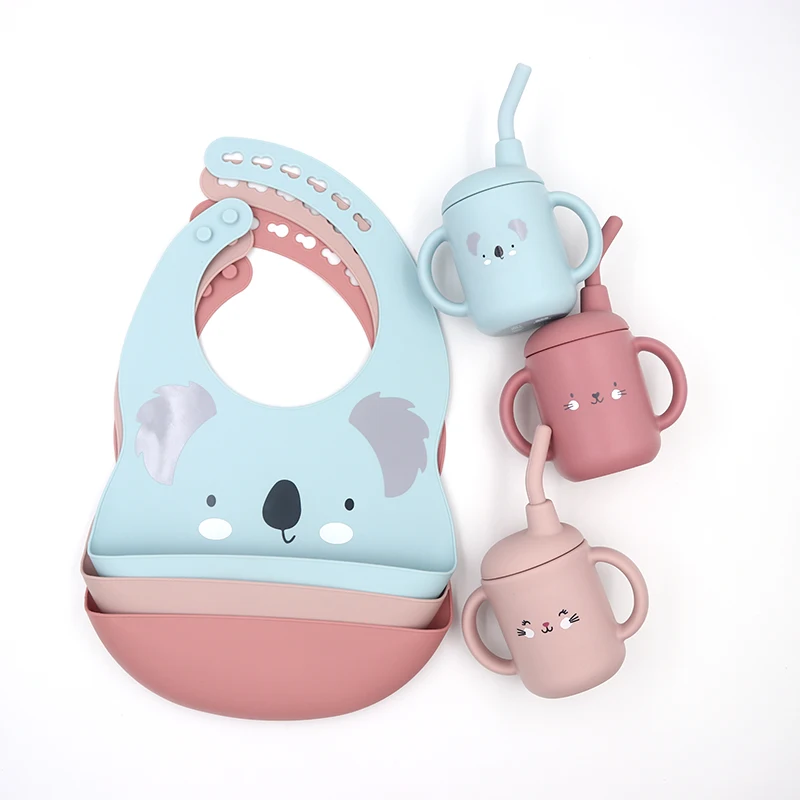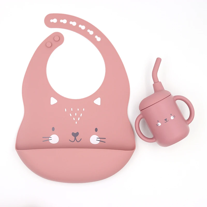 عضاضات سيليكون مضادة للماء للأطفال ، مجموعة مريلة ، سال لعابه ، طفل صغير ، أكواب الكرتون