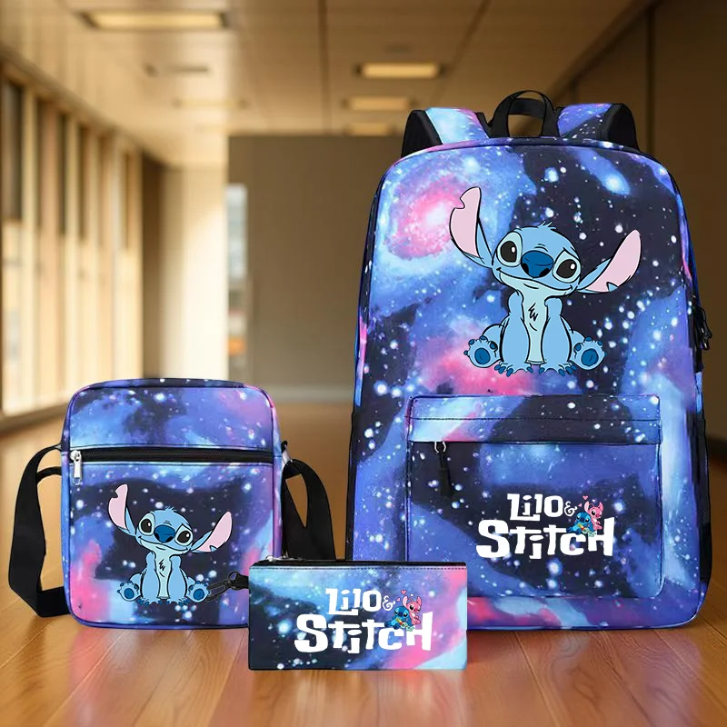 مجموعة حقيبة ظهر متينة من Stitch، حقيبة ظهر للطلاب ذات سعة كبيرة مع حقيبة كتف وحقيبة أقلام رصاص، مثالية للشباب واللوازم المدرسية
