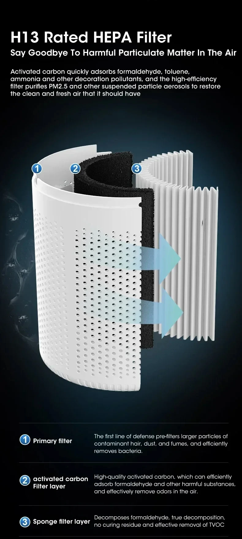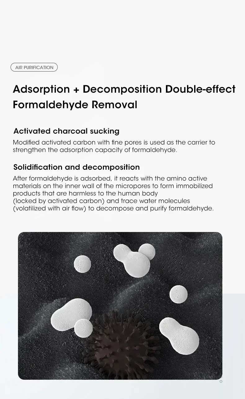 كائن الفلتر: الفورمالديهايد، التولوين، الأمونيا، PM2.5، الغبار العالق، جزيئات حبوب اللقاح، الدخان السلبي، الضباب، والرائحة