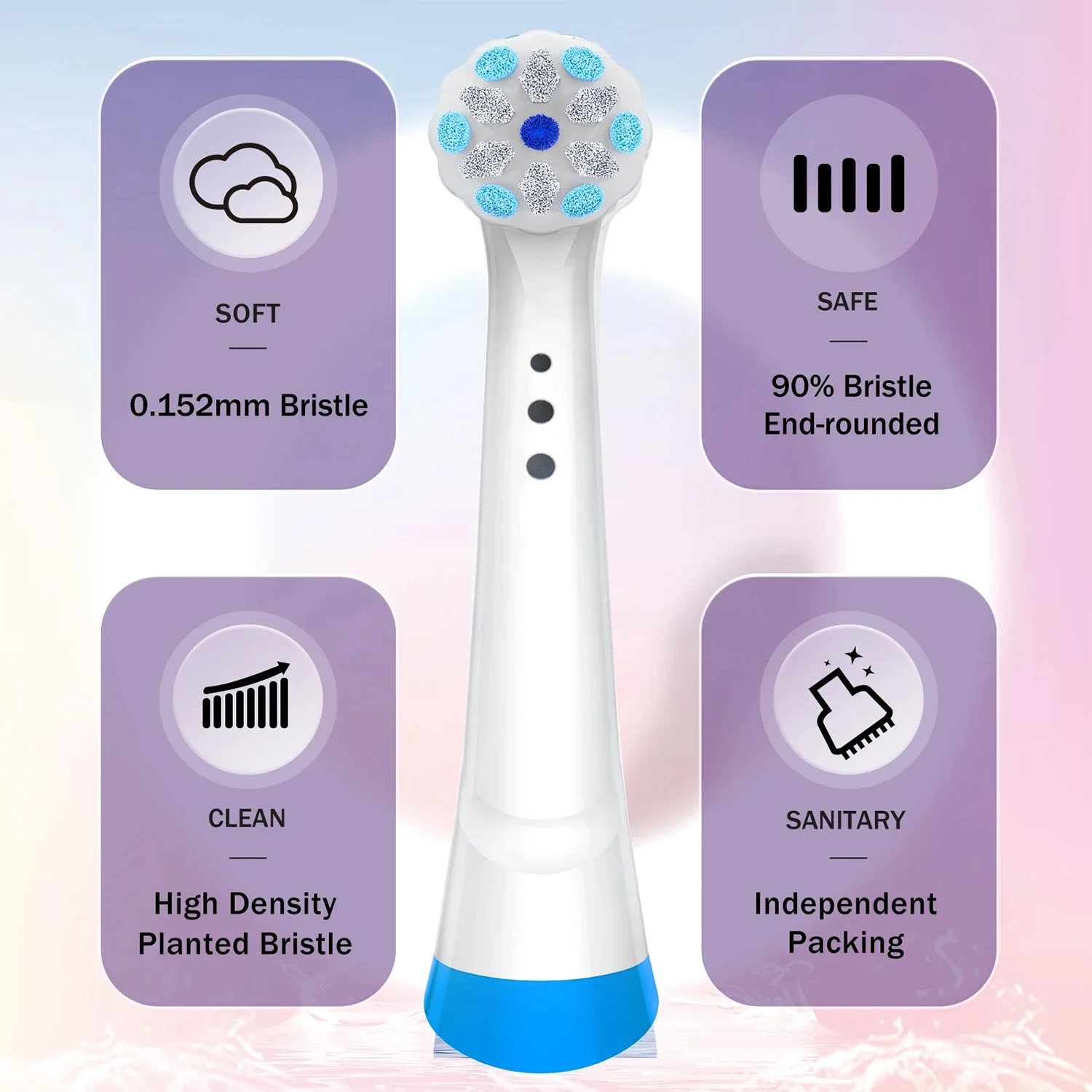حماية اللثة: نهاية الشعيرات مستديرة حتى لا تؤذي اللثة. يوفر رأس الفرشاة البديلة متوسطة الصلابة التوازن المثالي بين التنظيف الشامل والحماية من اللثة.