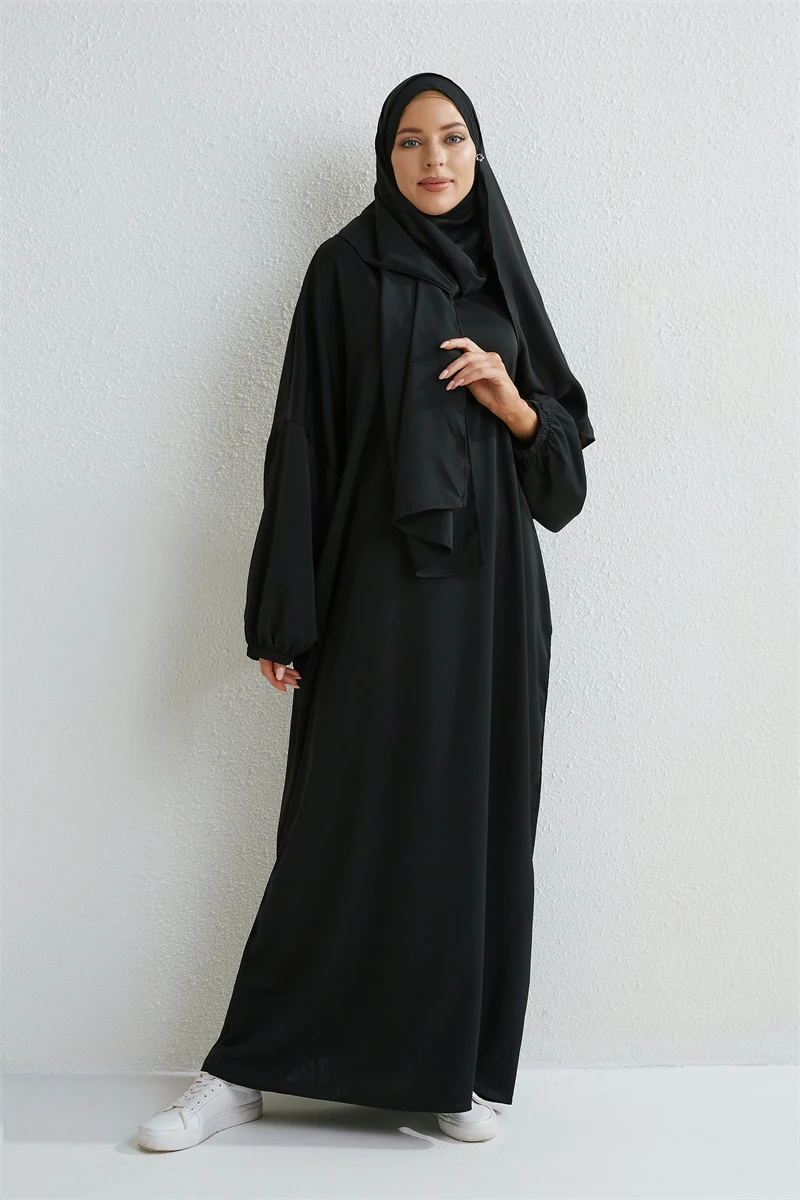 فستان صلاة عباية إسلامية قطعة واحدة بقلنسوة بأكمام مدخنة ملابس إسلامية للنساء جلباب دبي السعودية أسود رداء تركي حياء