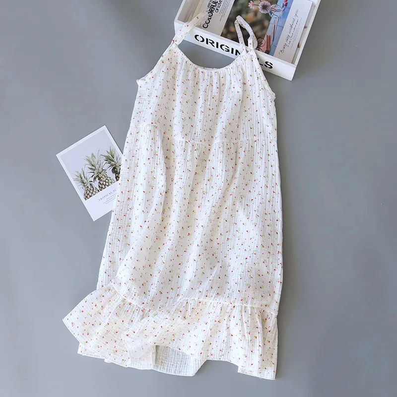 فساتين قطنية صيفية للنساء 100% كريب قمصان نوم للسيدات شاش مريح فستان نوم بحمالات ملابس نوم للنساء ملابس منزلية