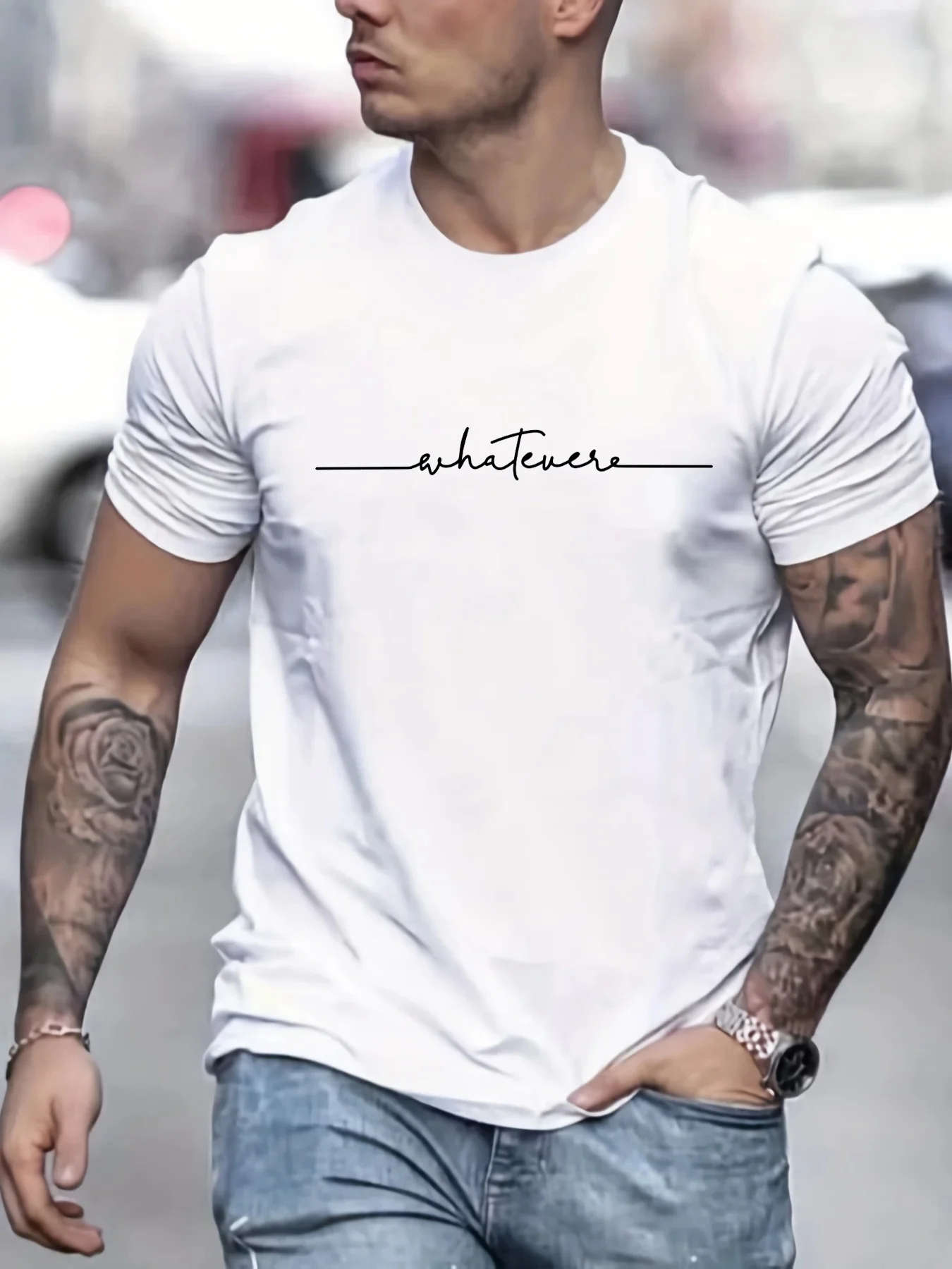 تي شيرت رجالي صيفي فضفاض من القطن الخالص بنسبة 100% بنمط حروف مطبوع كاجوال مريح برقبة دائرية وأكمام قصيرة