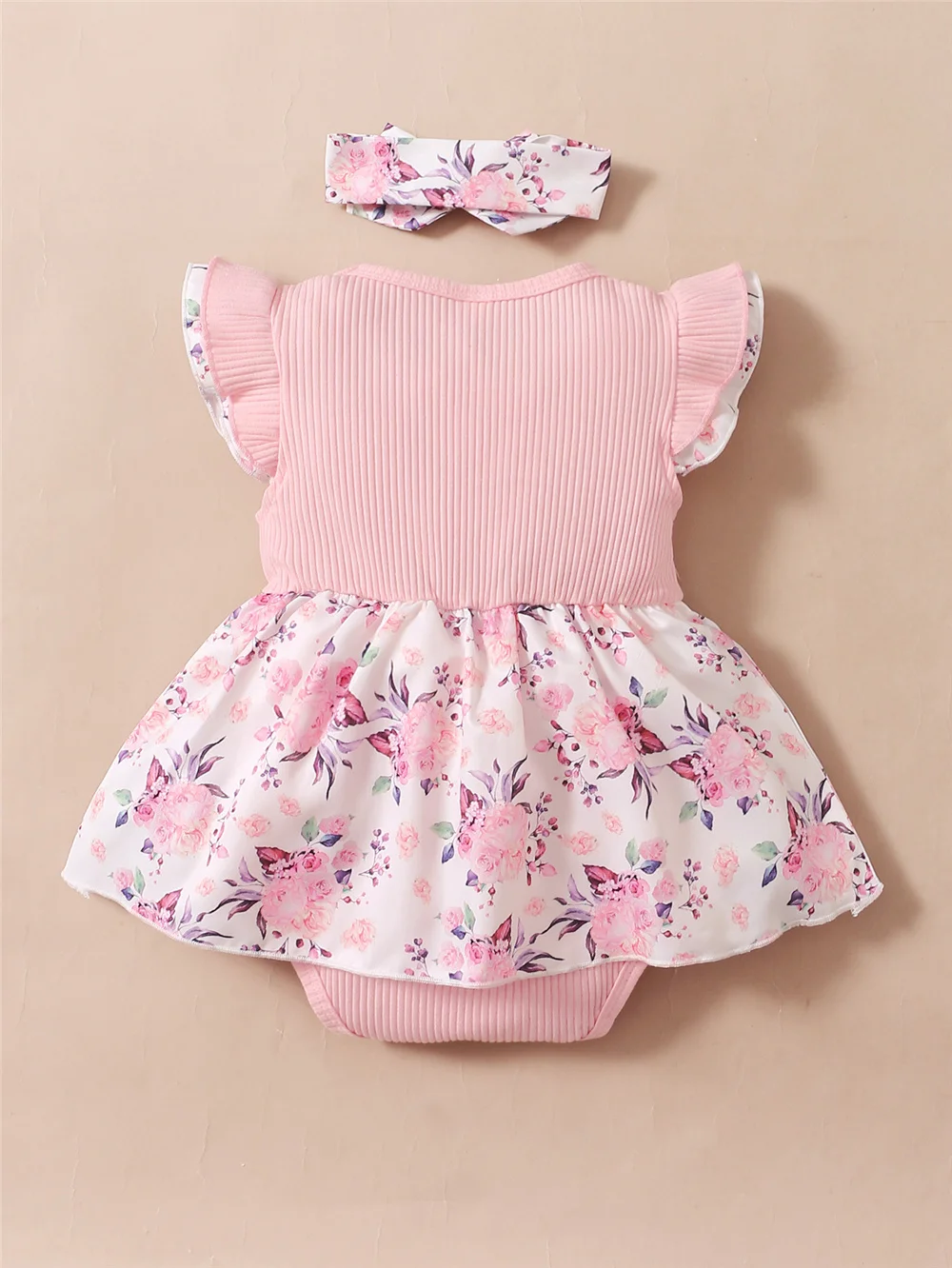 0-18 أشهر طفلة الأزهار رومبير فستان يطير كم الصيف مضلع بذلة مع عقال الوليد طفلة 2 قطعة الزي