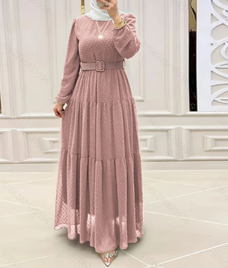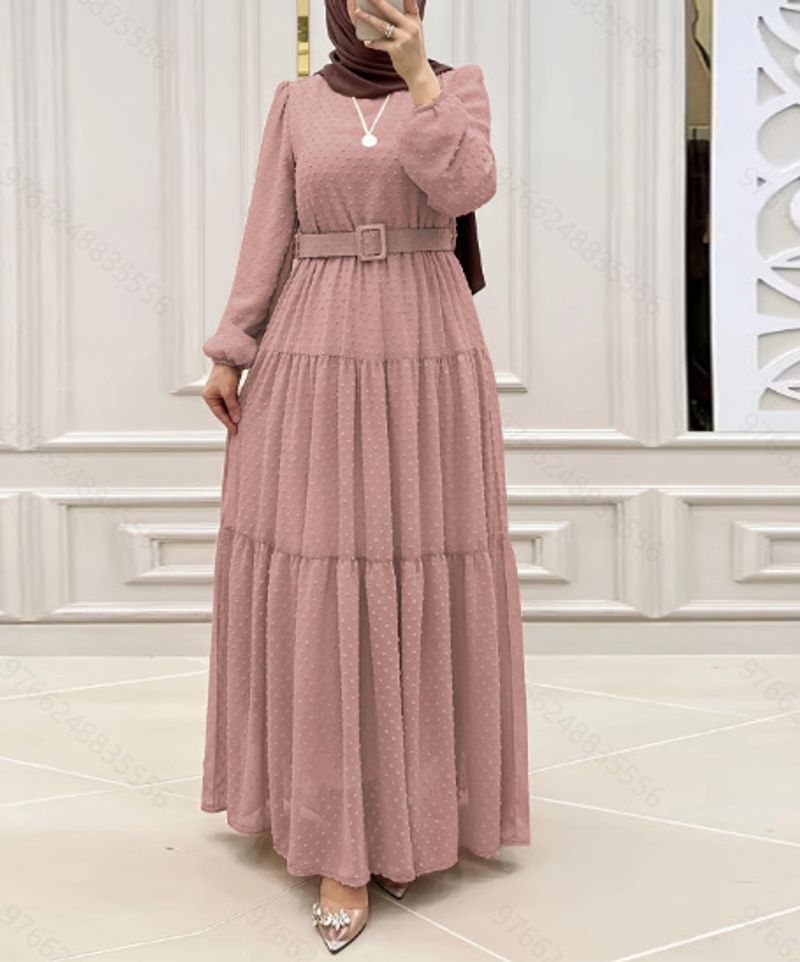 ملابس نسائية مسلمة بلون صلب ومعطف بنطاق جديد