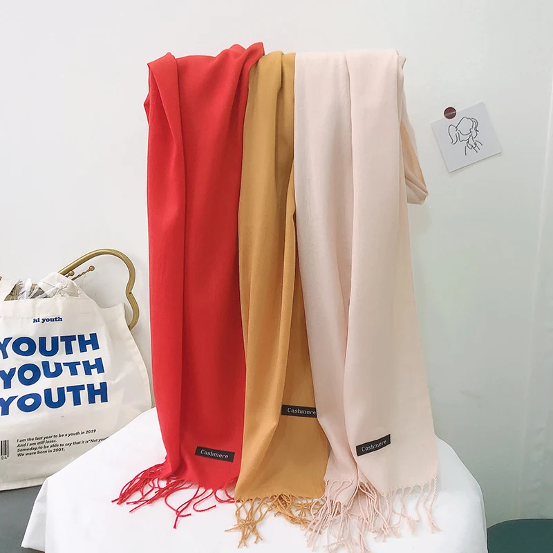 بلون الحجاب الكشمير مثل وشاح المرأة شتاء دافئ شالات طويلة ويلتف الحجاب والأوشحة الباشمينا شرابات رقيقة عقال