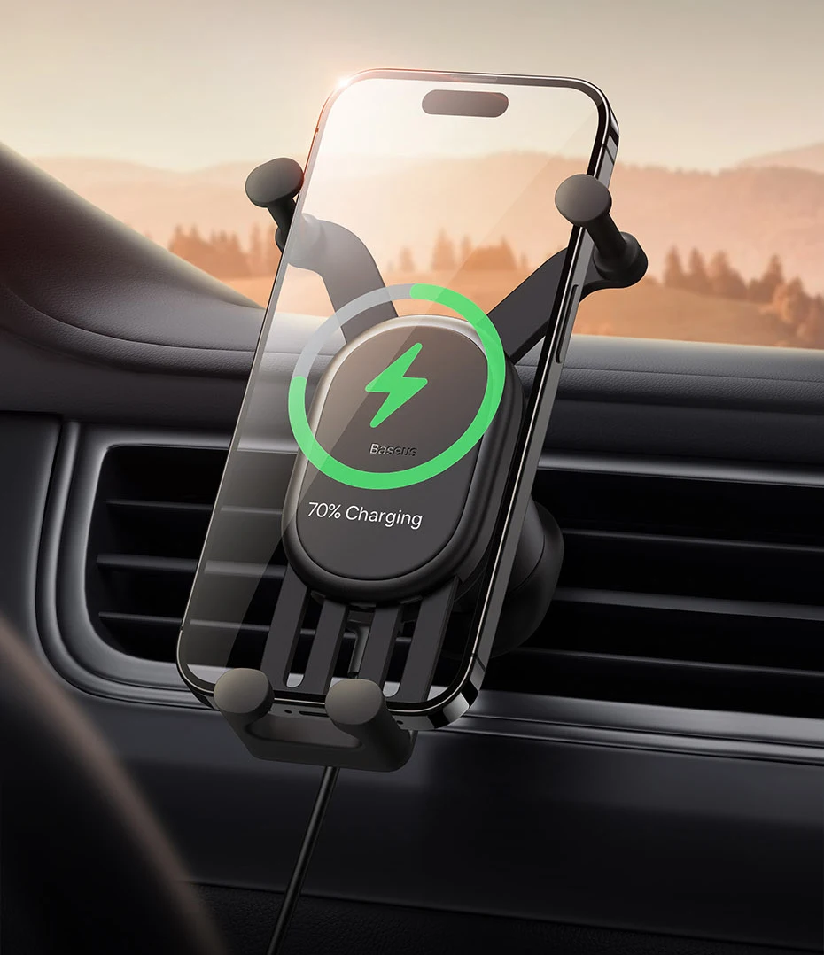 شاحن سيارة Baseus شاحن لاسلكي سريع بفتحة تهوية للشحن لهاتف iPhone 12 13 14 يدعم شاوموي