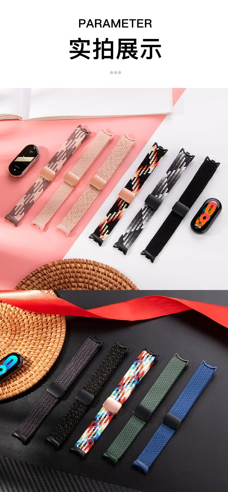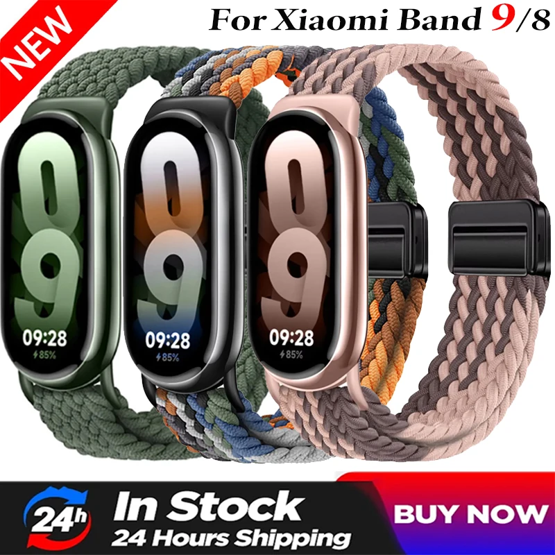 حزام حلقة مضفر لشاومي باند 8 9 نايلون قابل للتعديل مشبك مغناطيسي Mi الفرقة 9 سوار معصمه لملحقات Mi Band 8 9
