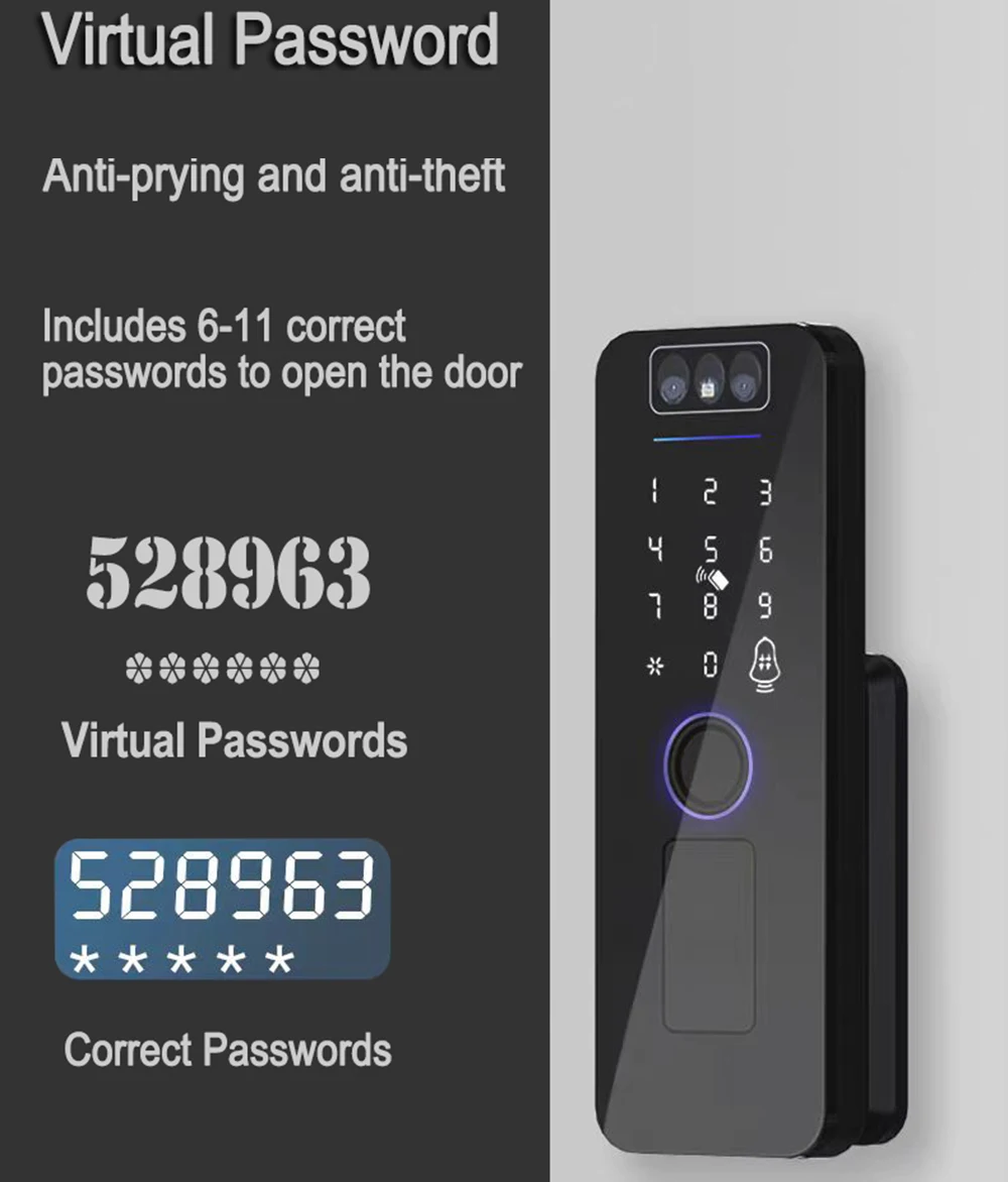 يدعم قفل الباب الذكي التعرف على الوجه/بصمة الإصبع/كلمة المرور/بطاقة IC/المفتاح الميكانيكي/طرق فتح التطبيق المتعددة.