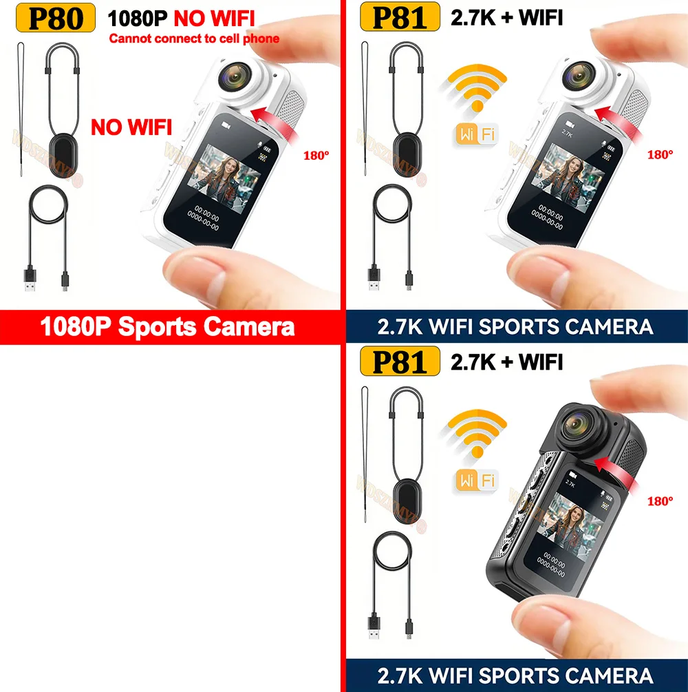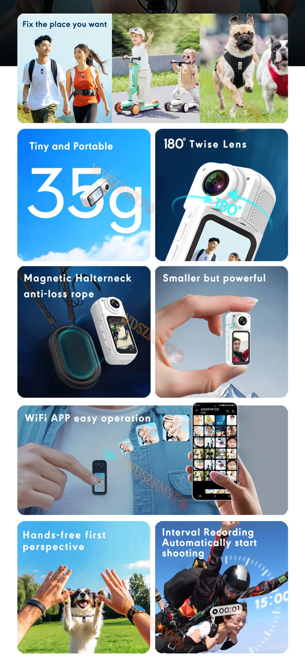 كاميرا الحركة الصغيرة 2.7K/1080P، كاميرا POV خفيفة الوزن 1.26oz مع خطاف مغناطيسي، 180 ° كاميرا الجسم المحمولة مدونة فيديو السفر الرياضية