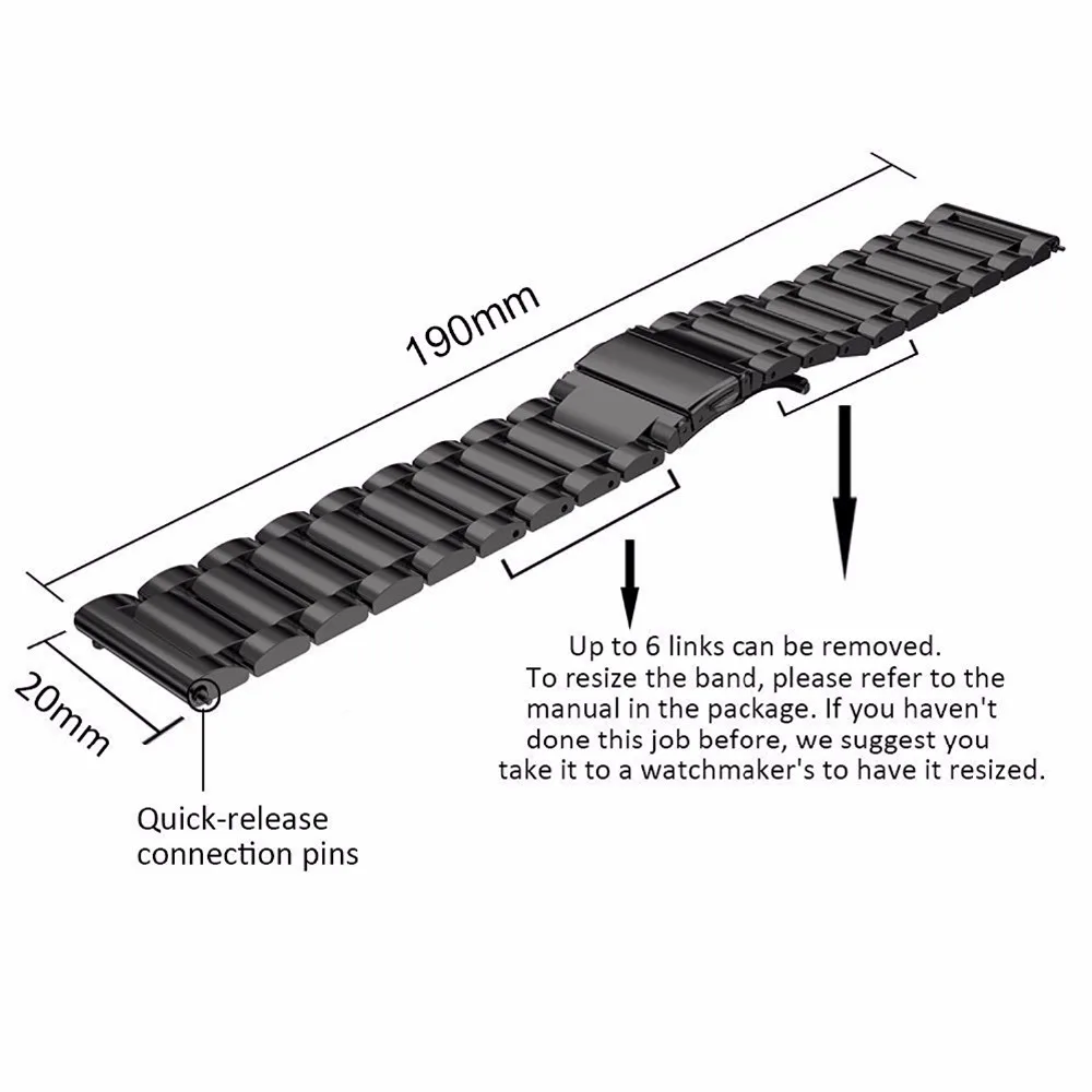 تتضمن العبوة:1 × سوار من الفولاذ المقاوم للصدأ2X دبابيس سريعة الإصدار(مزيل روابط النطاق، يجب عليك إضافته إلى عربة التسوق والشراء في الحزمة)