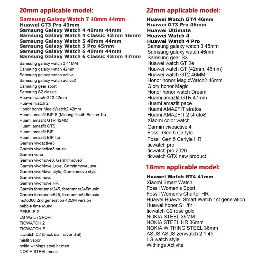 س: هل يمكن استخدام هذا السوار المعدني للساعات الذكية ذات العلامات التجارية الأخرى طالما أنه 22 ملم؟ج: نعم، تتوافق أحزمتنا مع ساعة Samsung Gear S3 Classic/Frontier، وساعة أخرى مقاس 22 مم.?