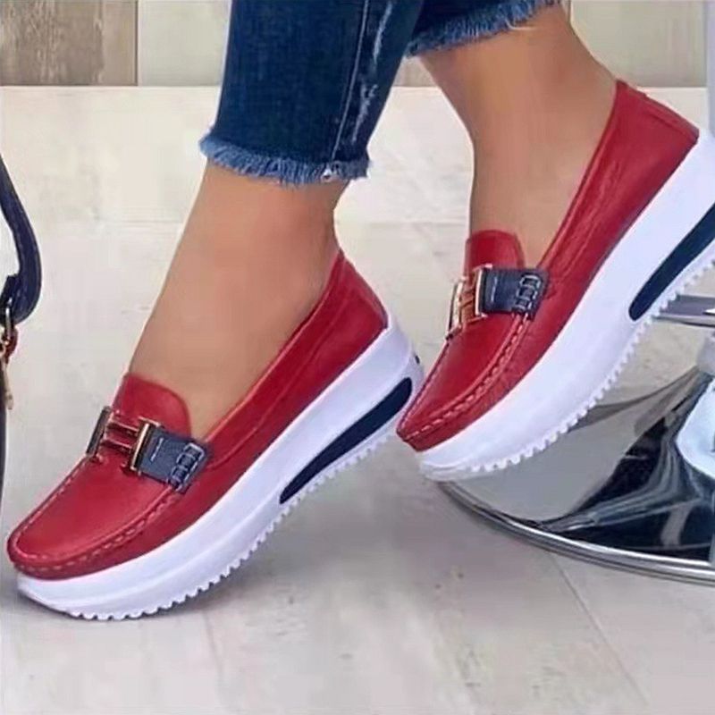 SHLIANG حذاء نسائي عالي الجودة لخريف 2023 - حذاء مريح بتصميم منصة مع زر معدني - حذاء كاجوال لمختلف الأعمار - حذاء وتد نسائي SB011