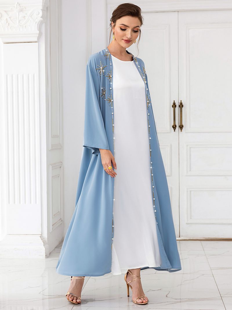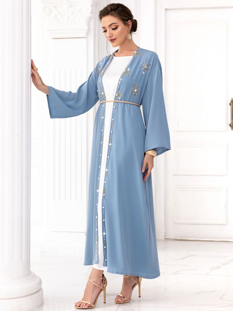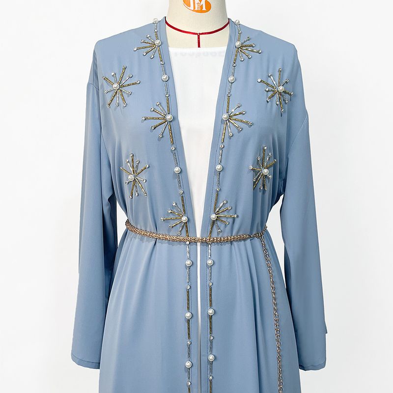 ملابس نسائية جديدة كارديغان معاطف خارجية مطرزة يدويًا بأشكال ماسية عباية كيمونو