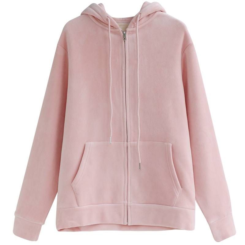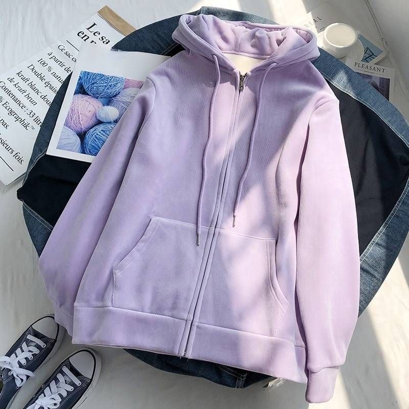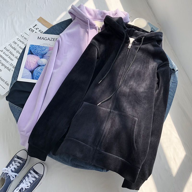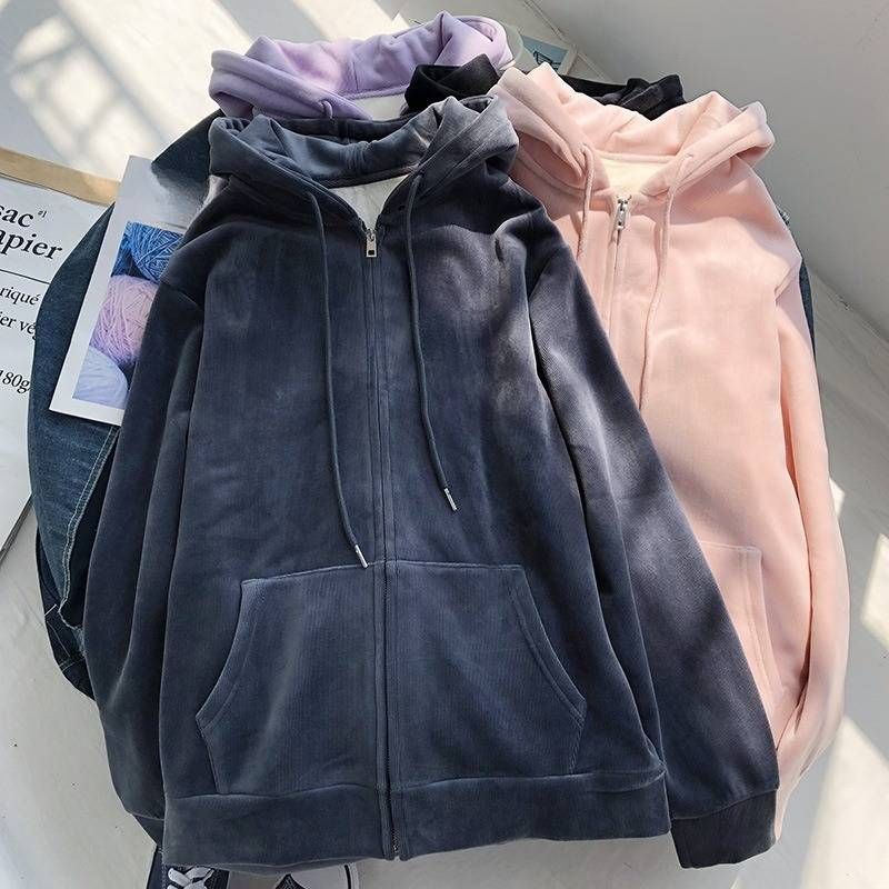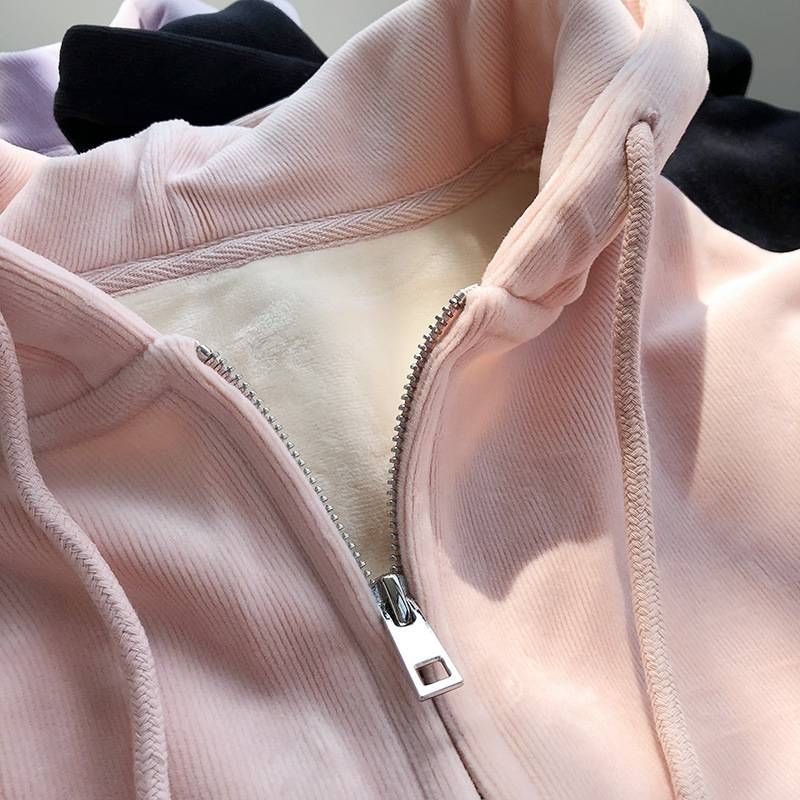 ملابس نسائية سweatshirt خريف وشتاء، مبطنة ومخملية، مناسبة للطلاب، رياضية بسيطة وكاجوال، مع زippers كارديغان، توب بقبعة هودي.