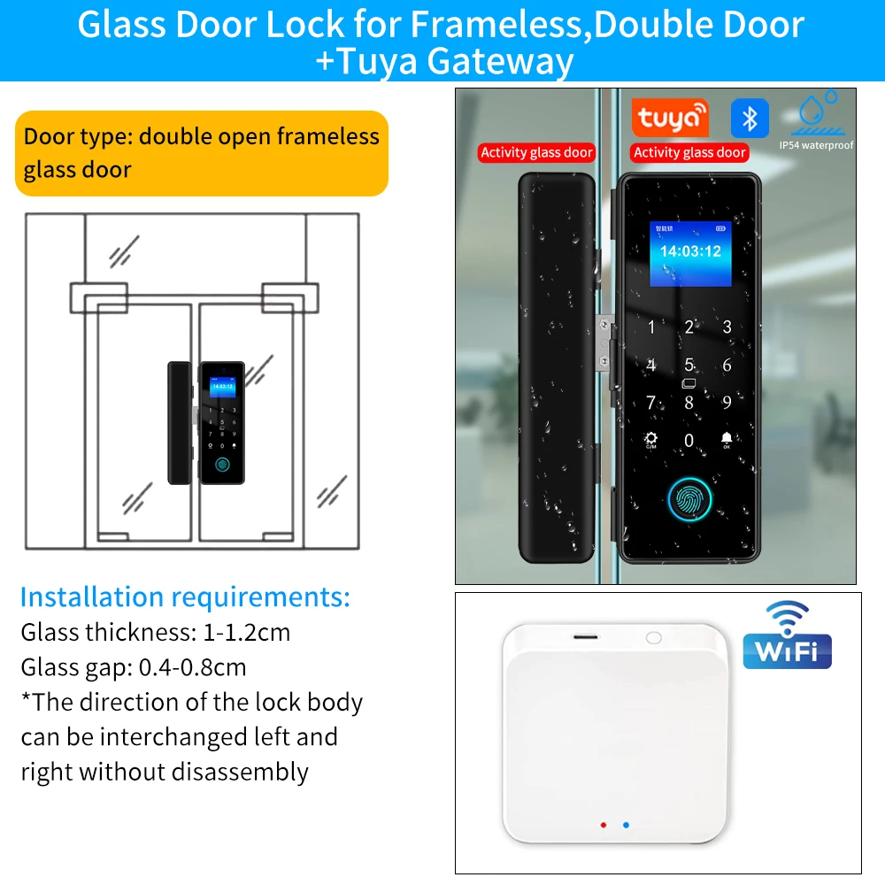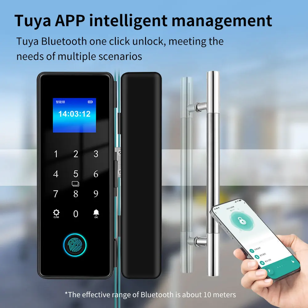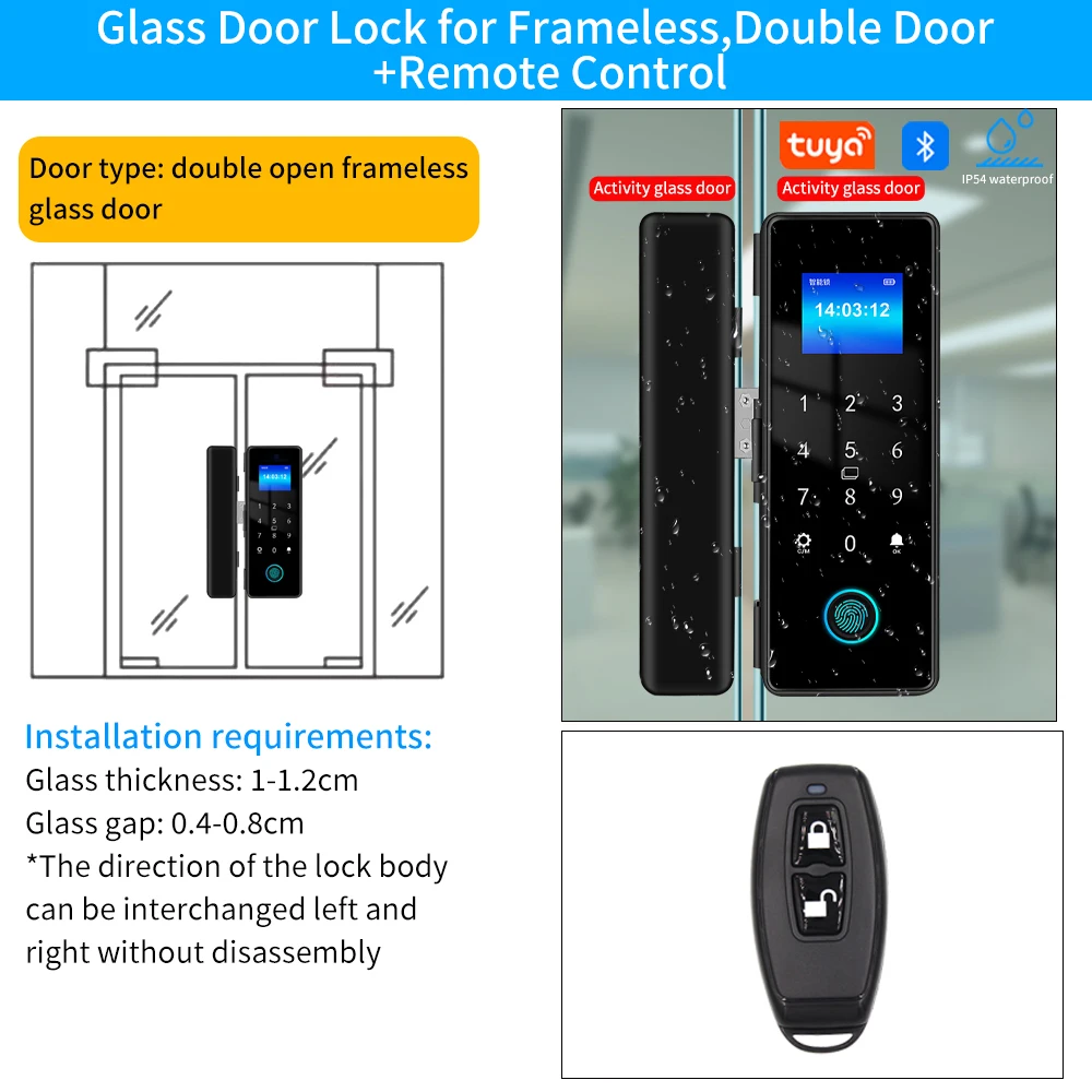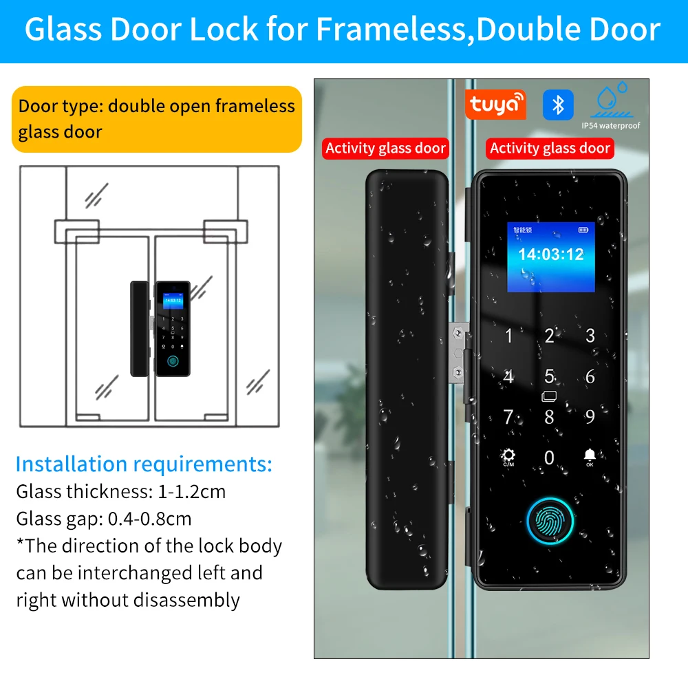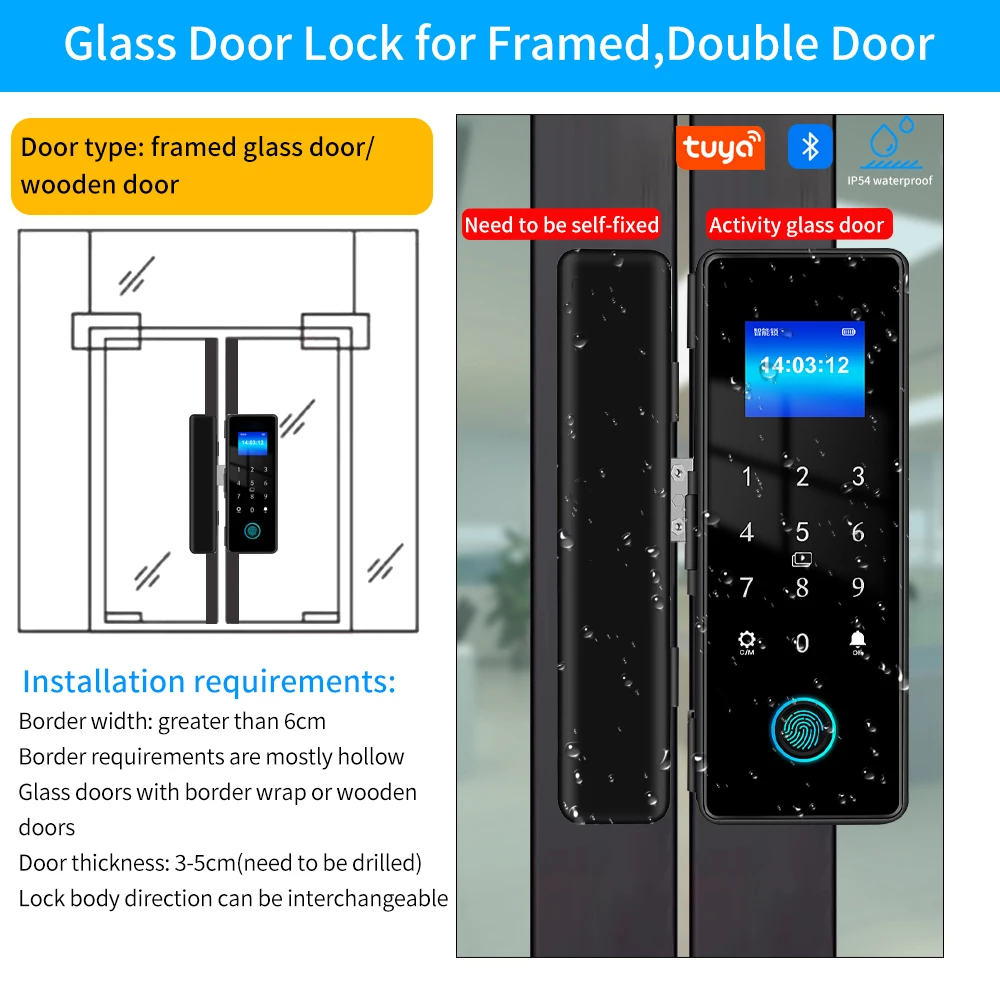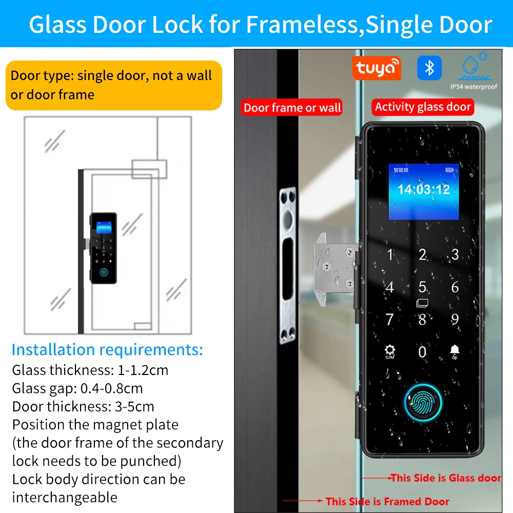 Tuya APP IP54 مقاوم للماء في الهواء الطلق بصمة قفل الباب للباب الزجاجي باب خشبي باب معدني مقاومة المنزل الذكي قفل أمان