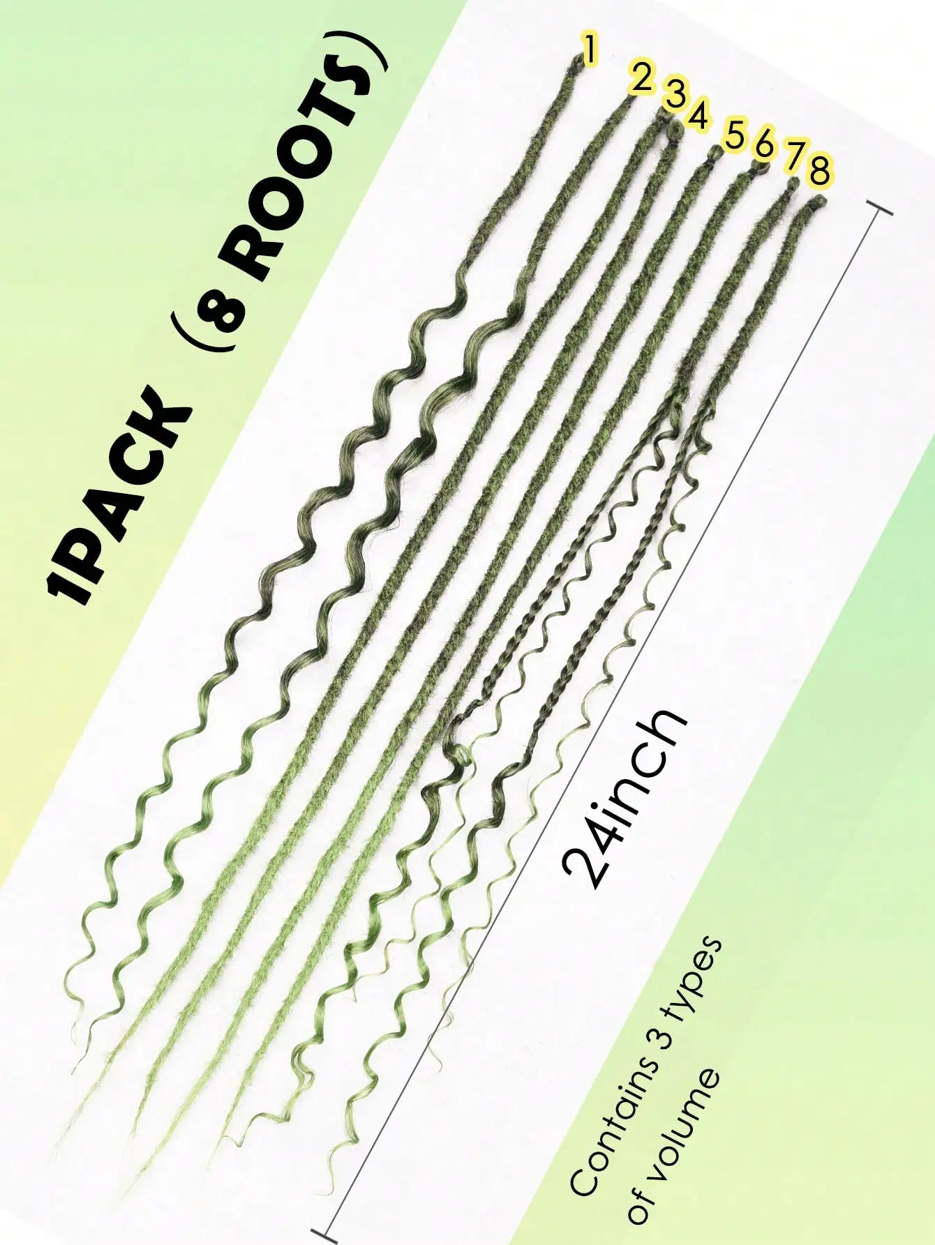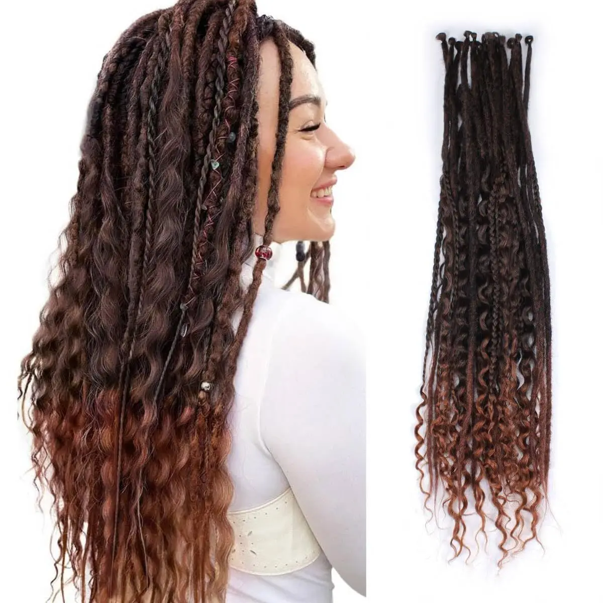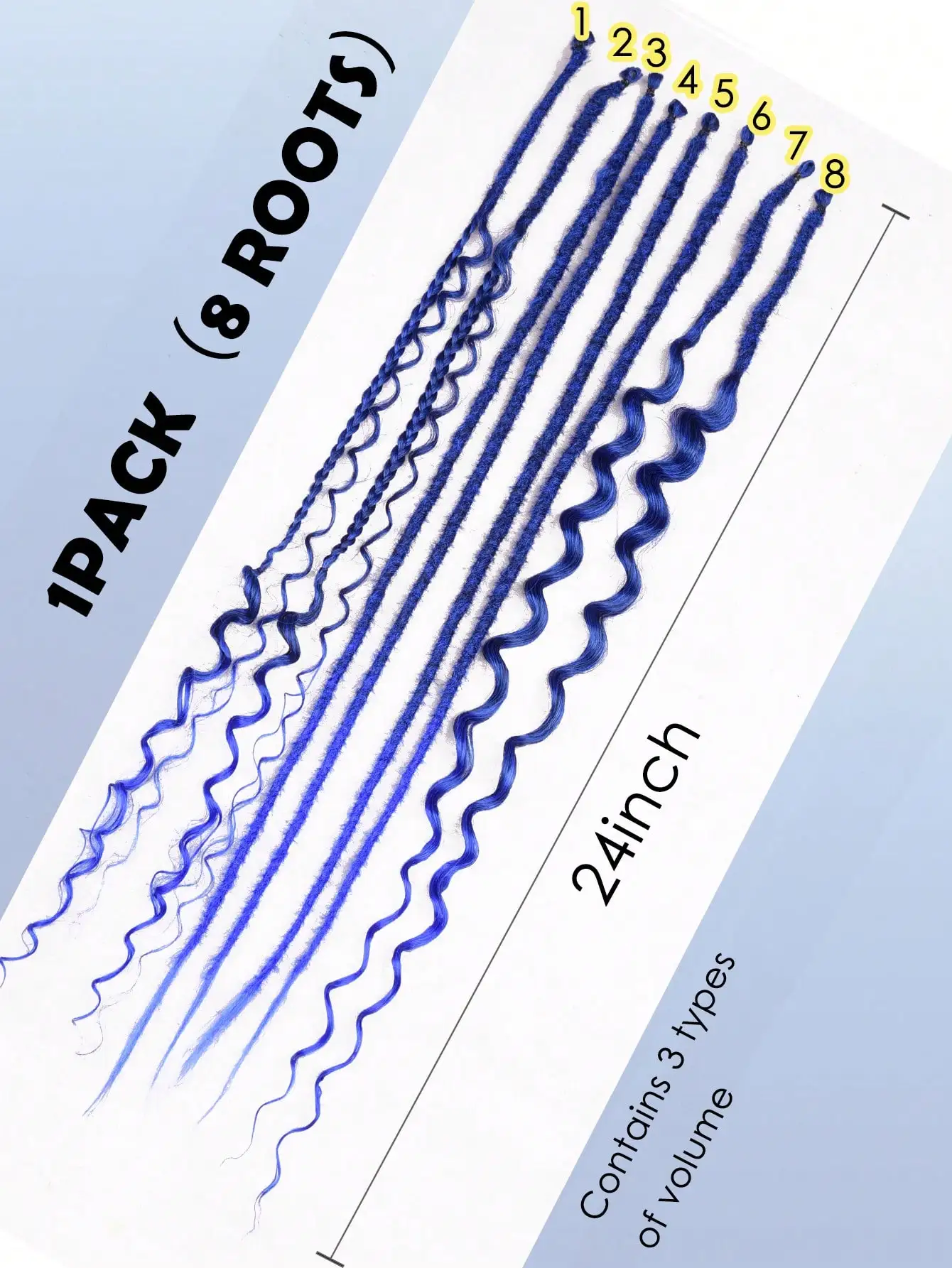 وصلات شعر صناعية 24 بوصة 8 خيوط/مجموعة من ضفائر الشعر المجدل SE، 3 في 1 نمط هيبي مختلط نهاية واحدة للنساء