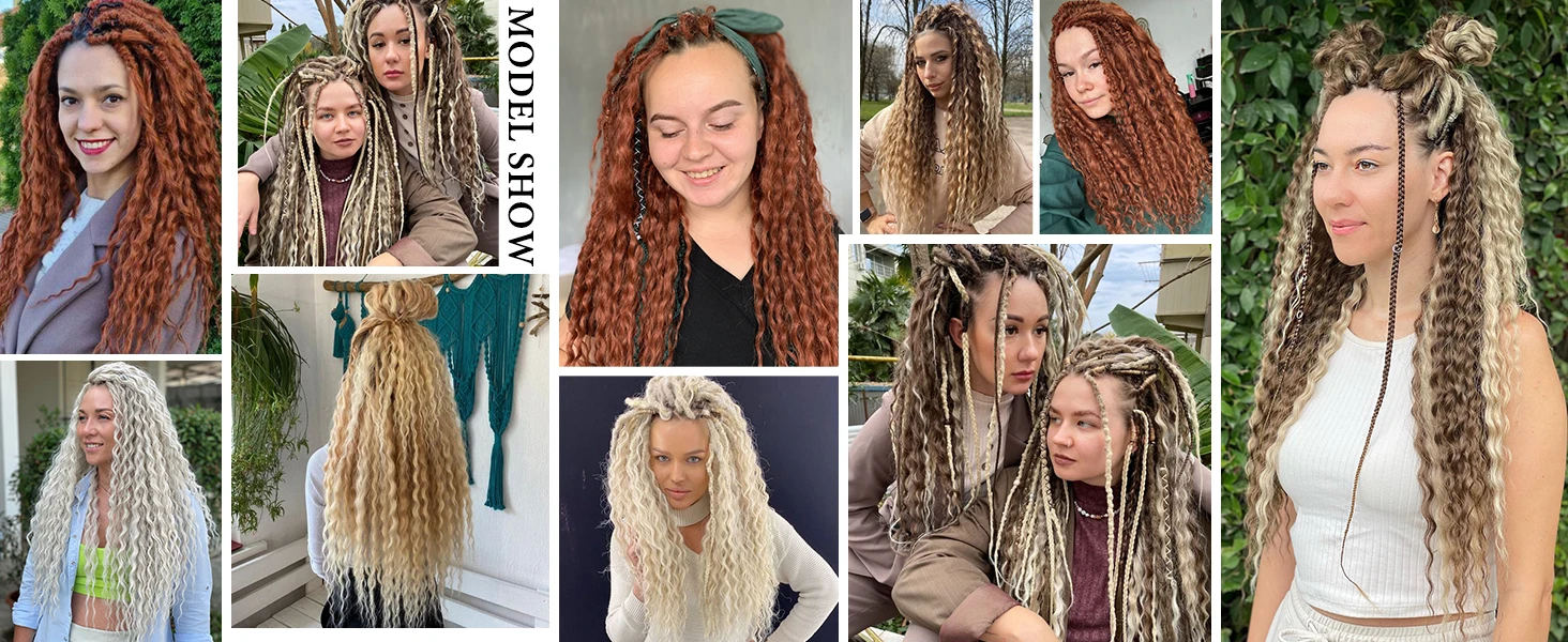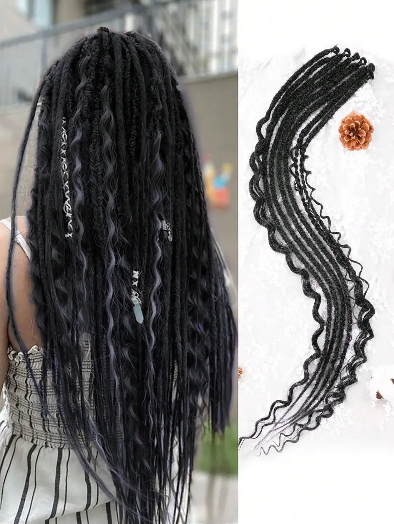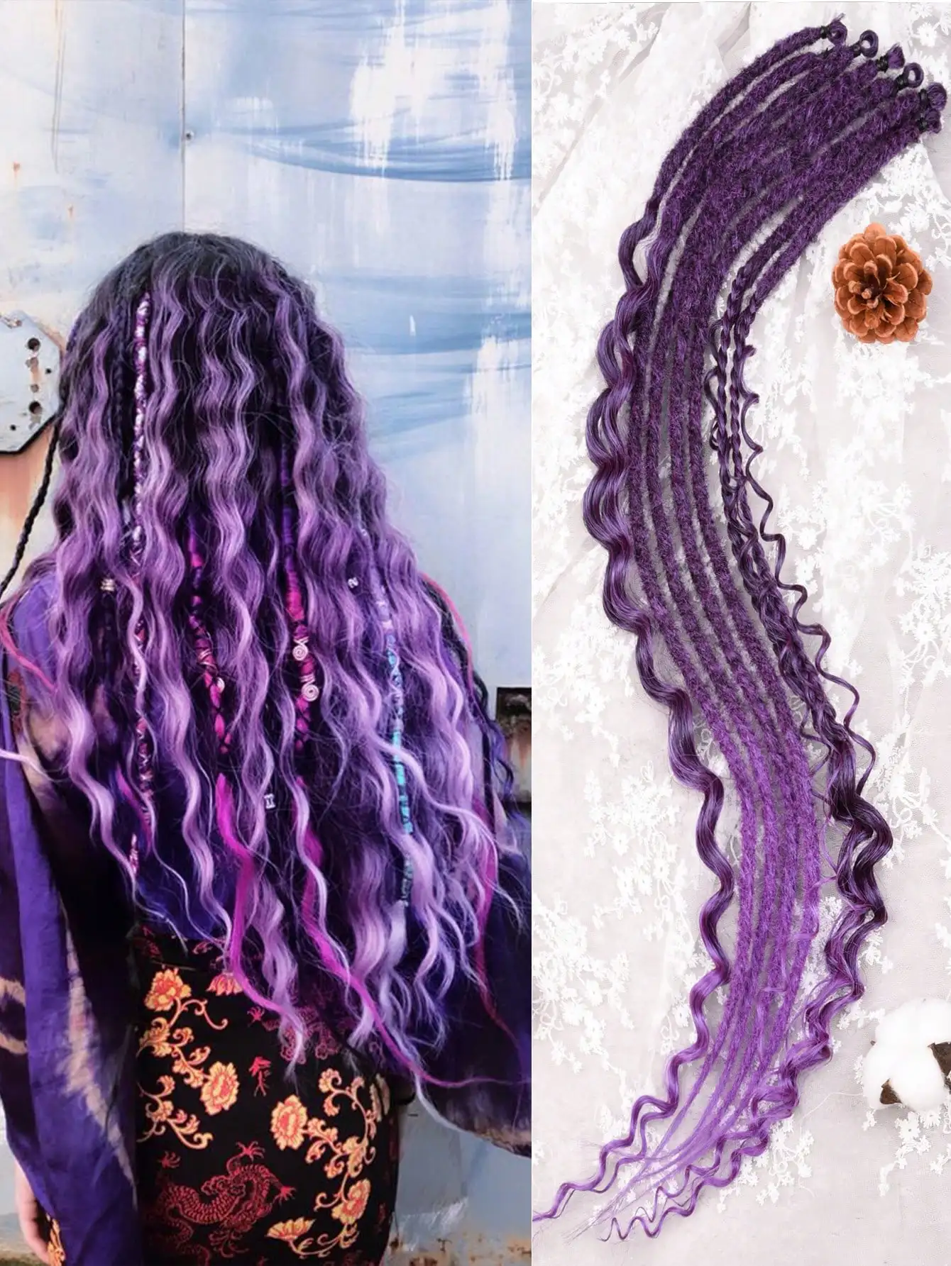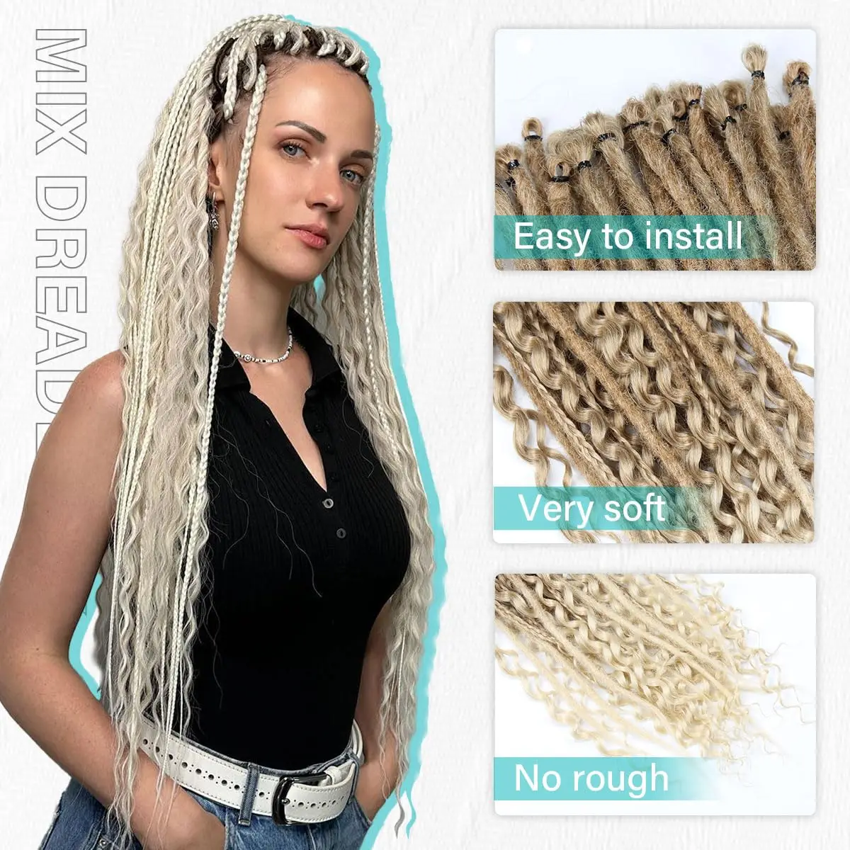 وصلات شعر صناعية 24 بوصة 8 خيوط/مجموعة من ضفائر الشعر المجدل SE، 3 في 1 نمط هيبي مختلط نهاية واحدة للنساء