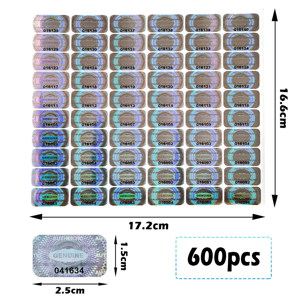 300/600 قطعة 2.5x1.5 سنتيمتر الأمن ختم العبث برهان ملصقات الثلاثية الأبعاد الضمان الفراغ ملضق الليزر مع الرقم التسلسلي لاصق التسمية