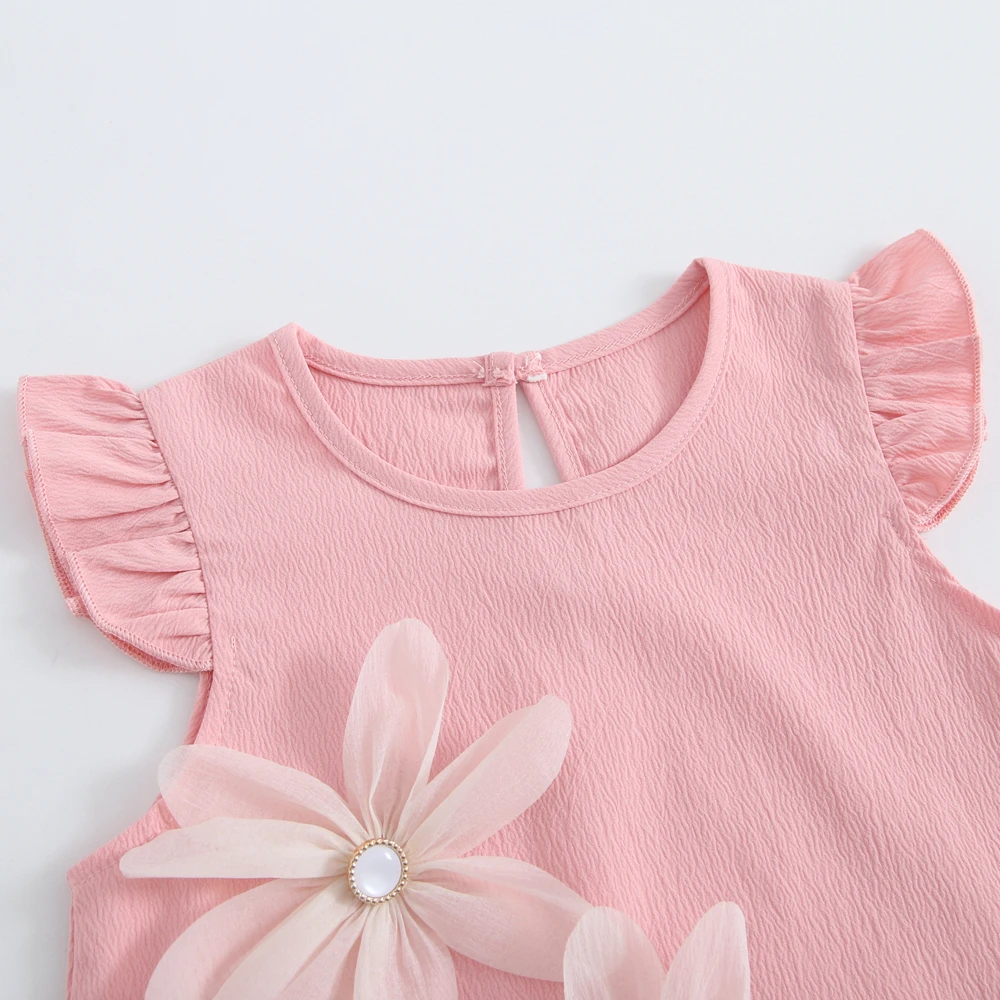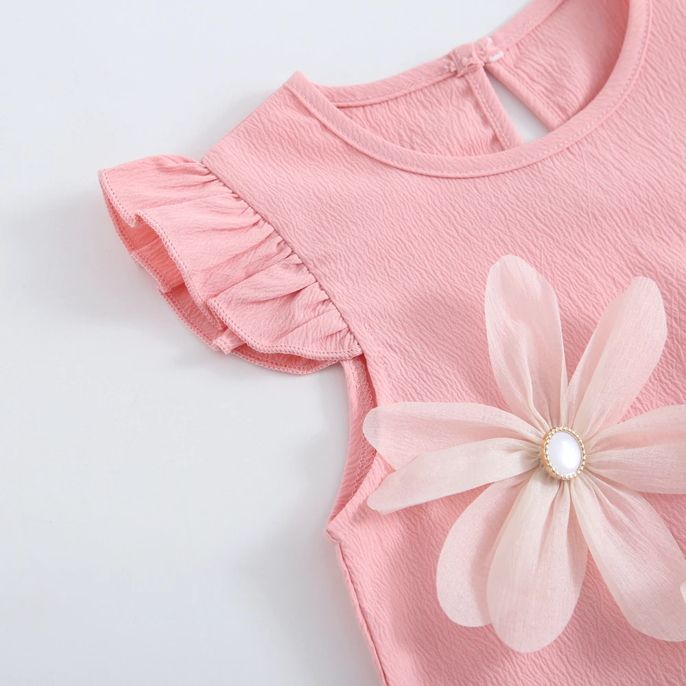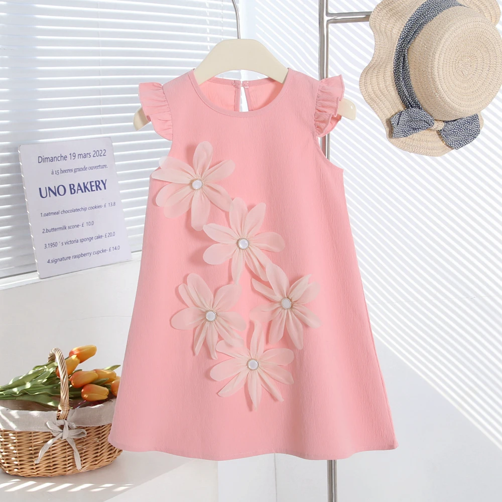 الفكاهة الدب الصيف الفتاة اللباس بلون كبير الزهور تزيين تحلق الأكمام أزياء فستان الأميرة ملابس الأطفال