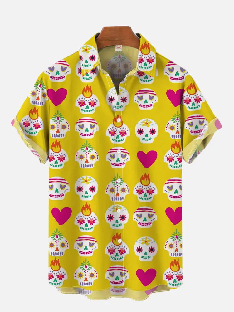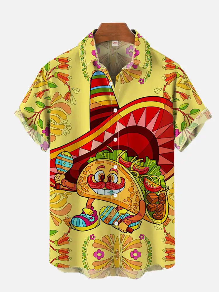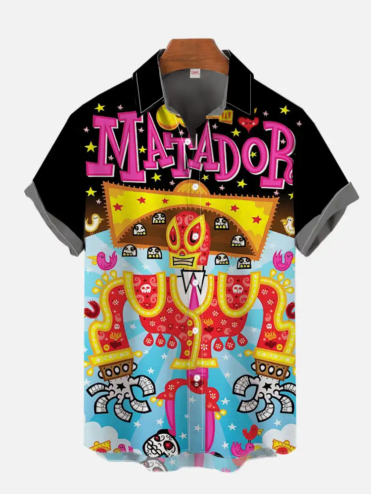 قميص هاواي بأكمام قصيرة للرجال ، طباعة ملصق فني ملون ، النمط المكسيكي ، ملابس الموضة ، جرافيتي