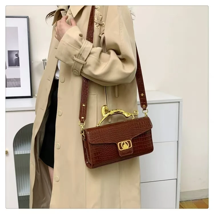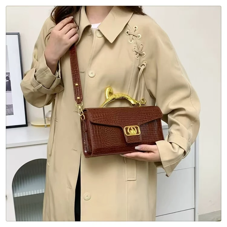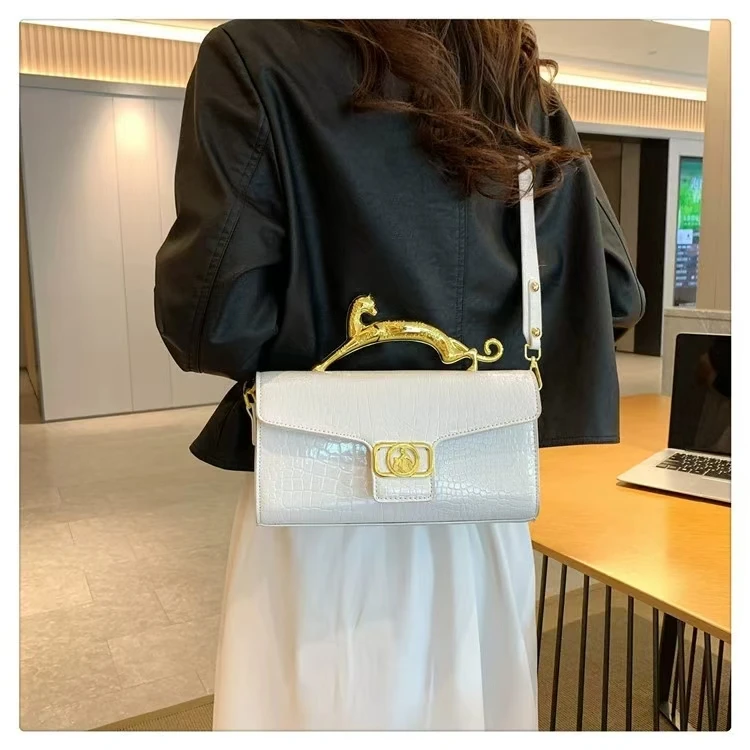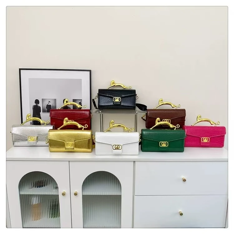حقيبة يد نسائية 2024 حقائب جديدة للنساء مقبض معدني جلد علامة تجارية مشهورة مصمم حقيبة كتف عصرية عصرية